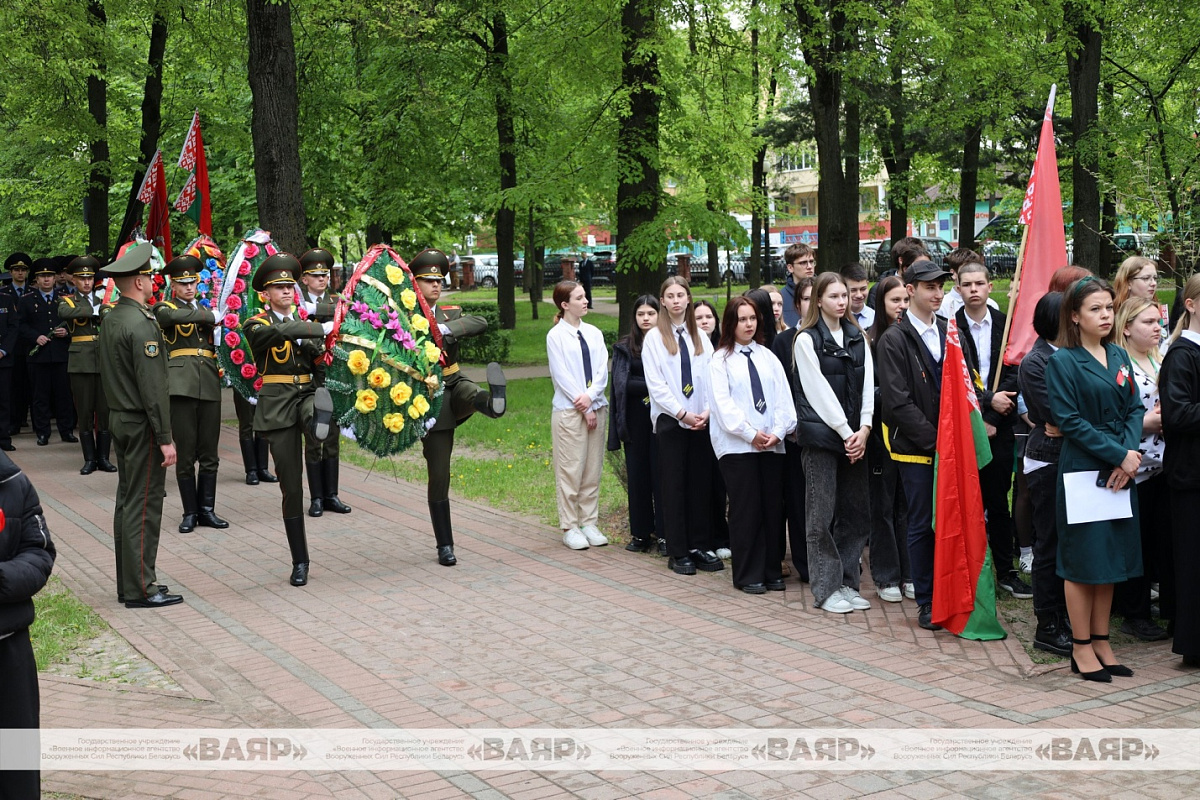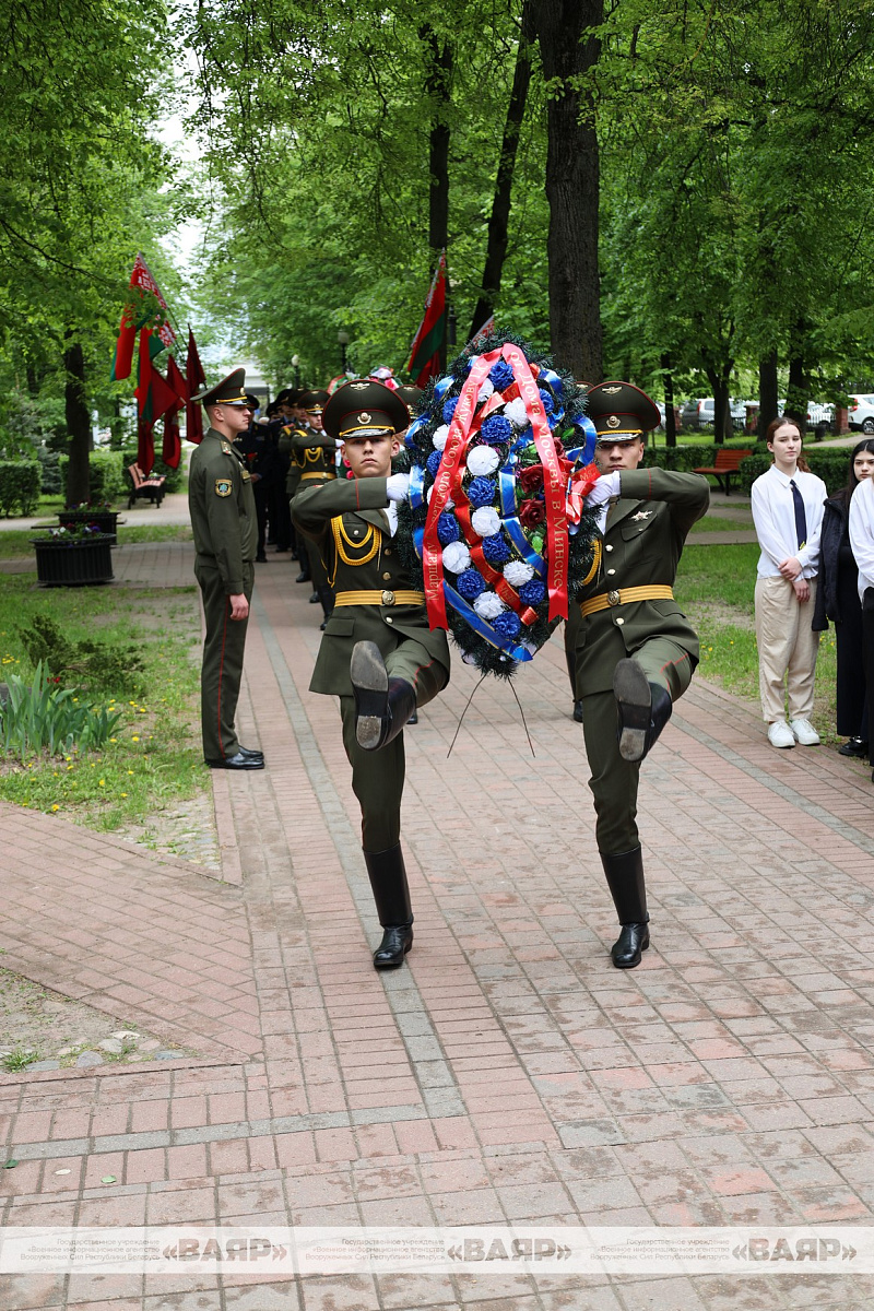 Под торжественные звуки военного оркестра роты почетного караула Минской военной комендатуры Вооруженных Сил к подножию памятника были возложены венки и цветы.
