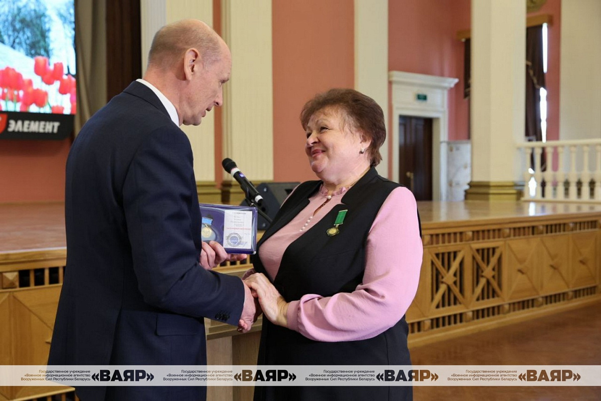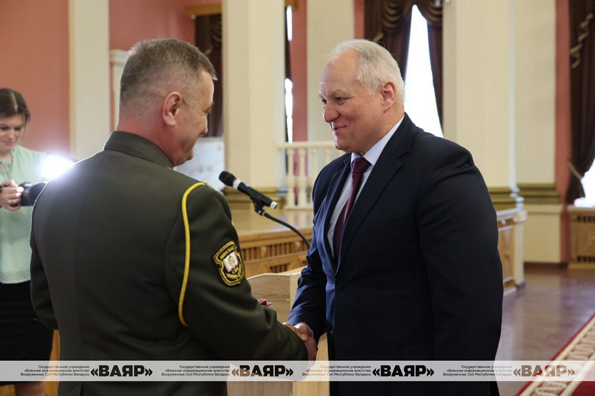 На торжественном собрании начальник училища вручил награды почетным гостям за выдающиеся заслуги и вклад в развитие МСВУ. Заместитель начальника училища по учебно-методической работе Татьяна Кулеш награждена медалью «Заслуженный миротворец».
