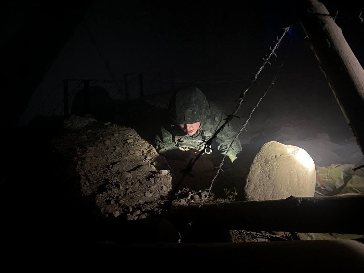 В ходе тактико-специальных занятий с элементами психологической подготовки новобранцы преодолели различные препятствия в условиях, приближенных к боевым: под звуки выстрелов и крики раненых, дымовые шашки, всевозможные инженерные заграждения и минные поля.