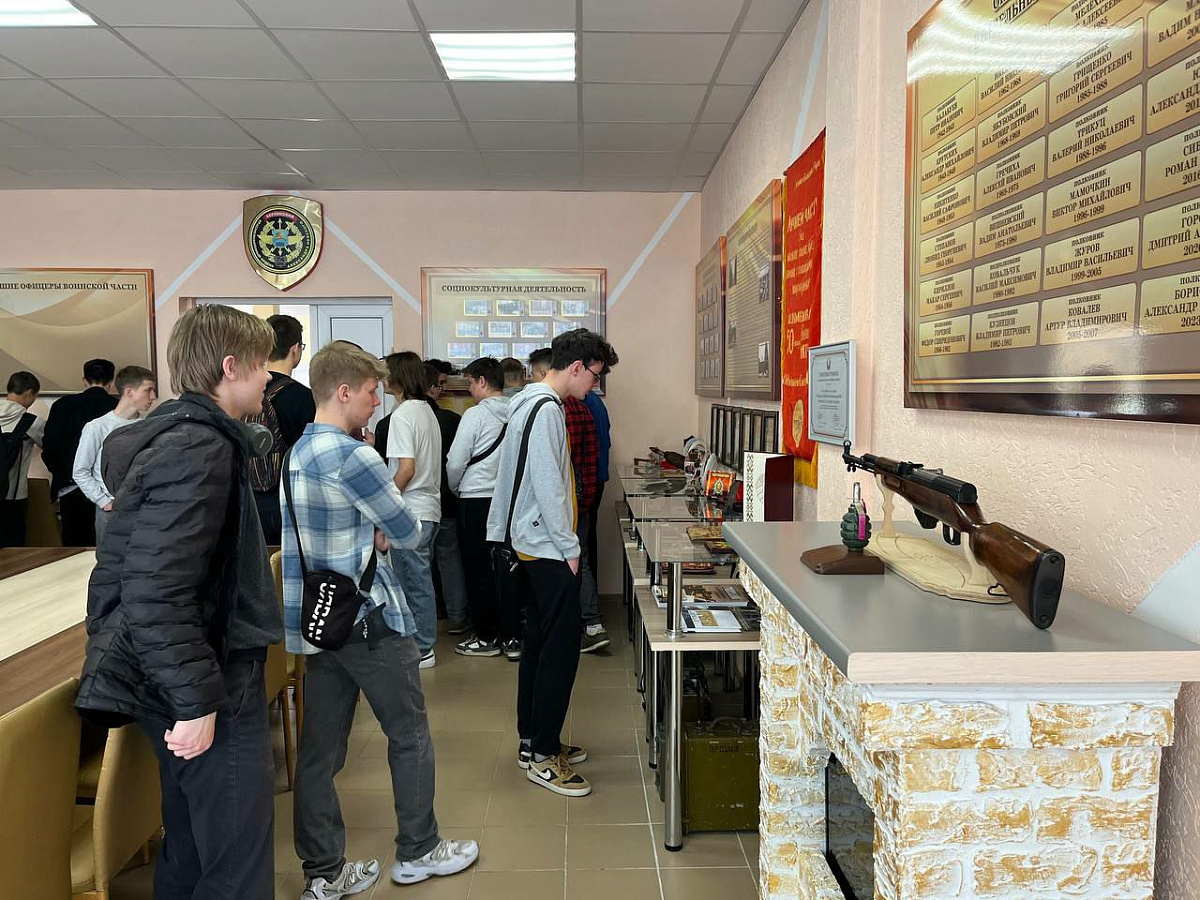 Учащиеся ознакомились с условиями проживания и бытом военнослужащих. Также гости заглянули в комнату боевой славы полка.