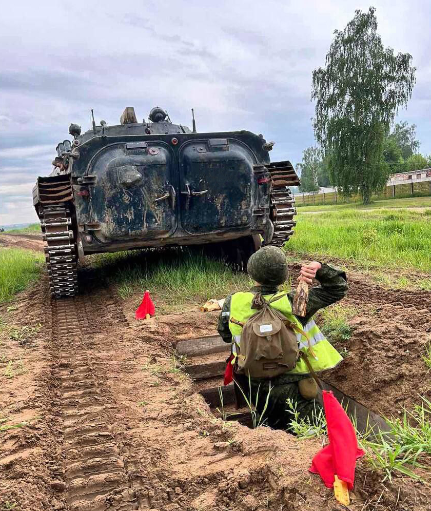 Одно из ключевых упражнений — обкатка бронетехникой. Курсанты вели огонь по приборам прицеливания и наблюдения бронетехники, метали гранаты и поражали технику условного противника. За несколько секунд нужно метнуть две гранаты и обстрелять многотонную машину. И все это в условиях, приближенных к реальному бою: дымовая завеса, стрельба и взрывы…
