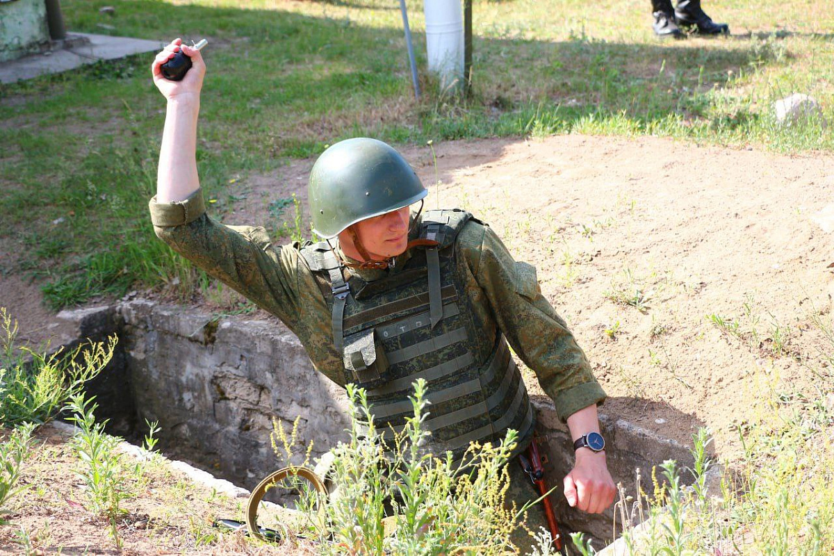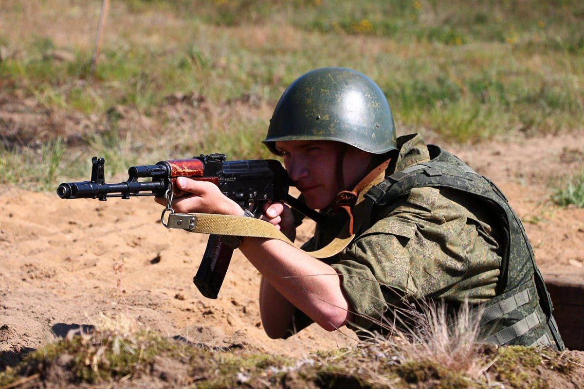 Новобранцы выполняют упражнение стрельб из автомата АК-74, метают учебно-имитационную гранату, снаряжают магазин боеприпасами, проходят обкатку бронетехникой.