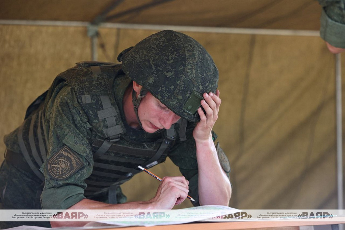Военнослужащие Северо-Западного и Западного оперативных командований, 31-го навигационно-топографического центра приняли участие в проходящем на полигоне Уручье третьем этапе конкурса на лучший топогеодезический расчет Вооруженных Сил Республики Беларусь «Меридиан» под названием «Топографический квадратлон».