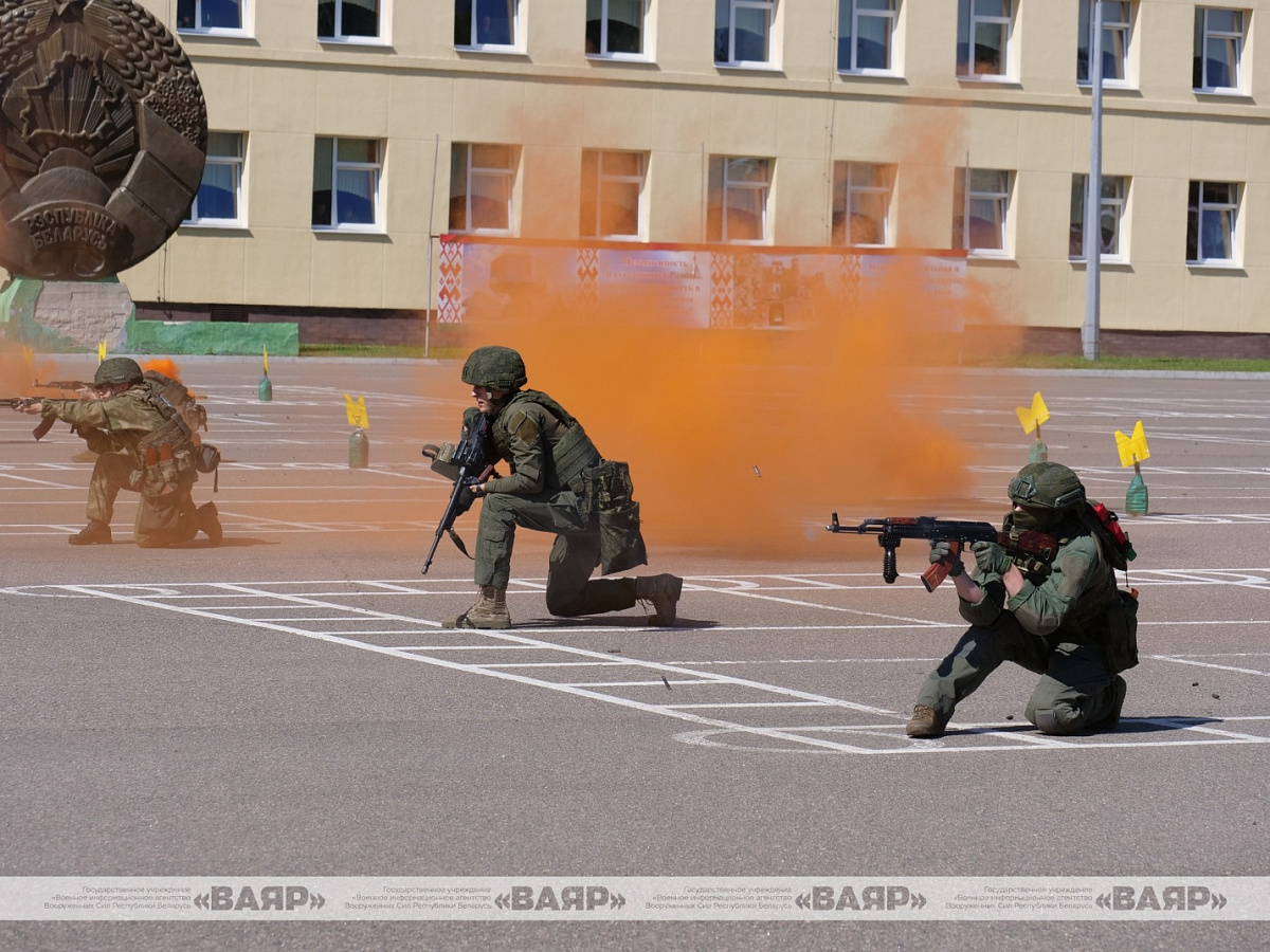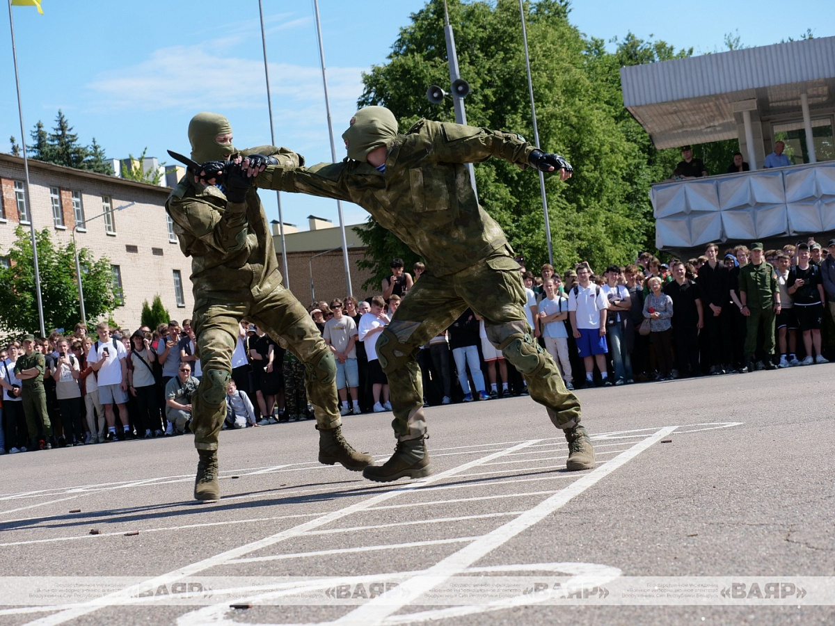 Гости узнали особенности поступления в главный военный вуз страны, пообщались с курсантами и офицерами, ознакомились с вооружением и военной техникой. На строевом плацу были представлены показательные выступления факультетов Военной академии Республики Беларусь.