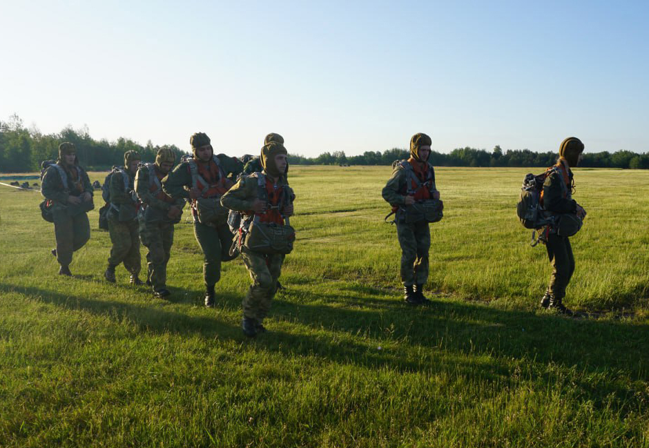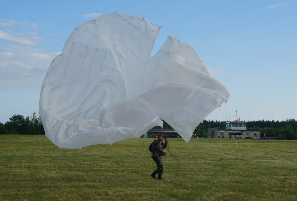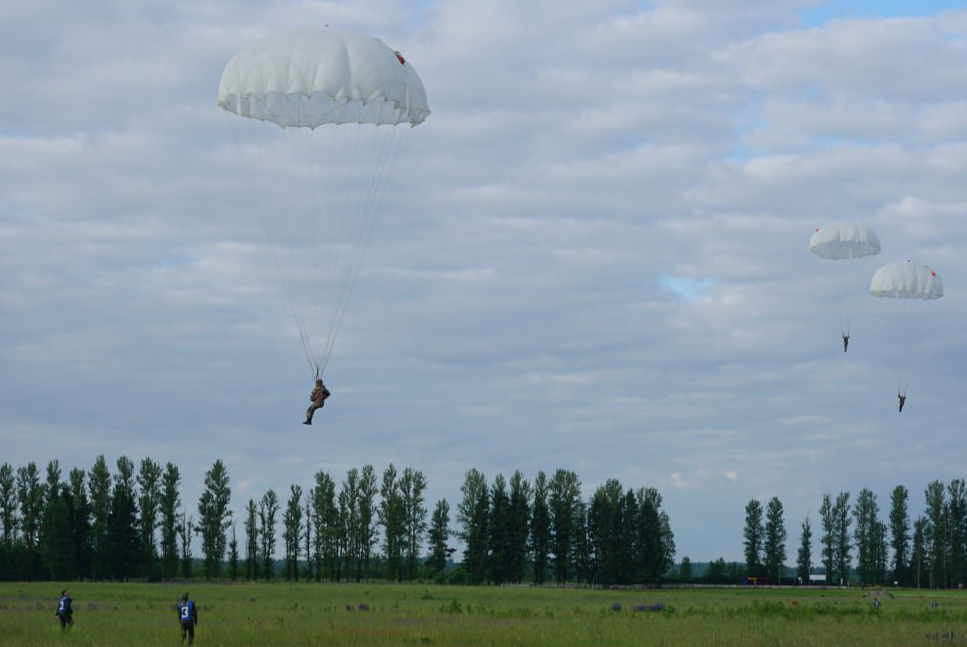 Военнослужащие 103-й Витебской отдельной гвардейской воздушно-десантной бригады совершили прыжки с парашютом. Десантирование осуществлялось с самолета АН-2 на высоте 600 метров.