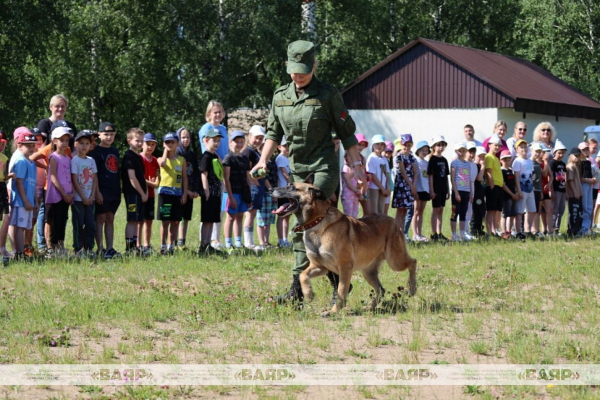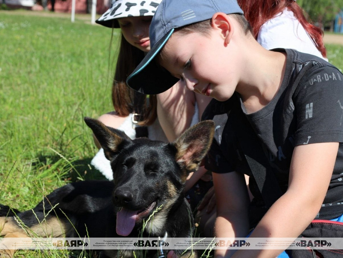Военнослужащие и их верные четвероногие друзья продемонстрировали ряд приемов, вызвав взрыв оваций благодарных зрителей. После показного выступления под контролем кинологов воспитанники лагеря смогли познакомиться с четвероногими друзьями и получили море положительных эмоций.