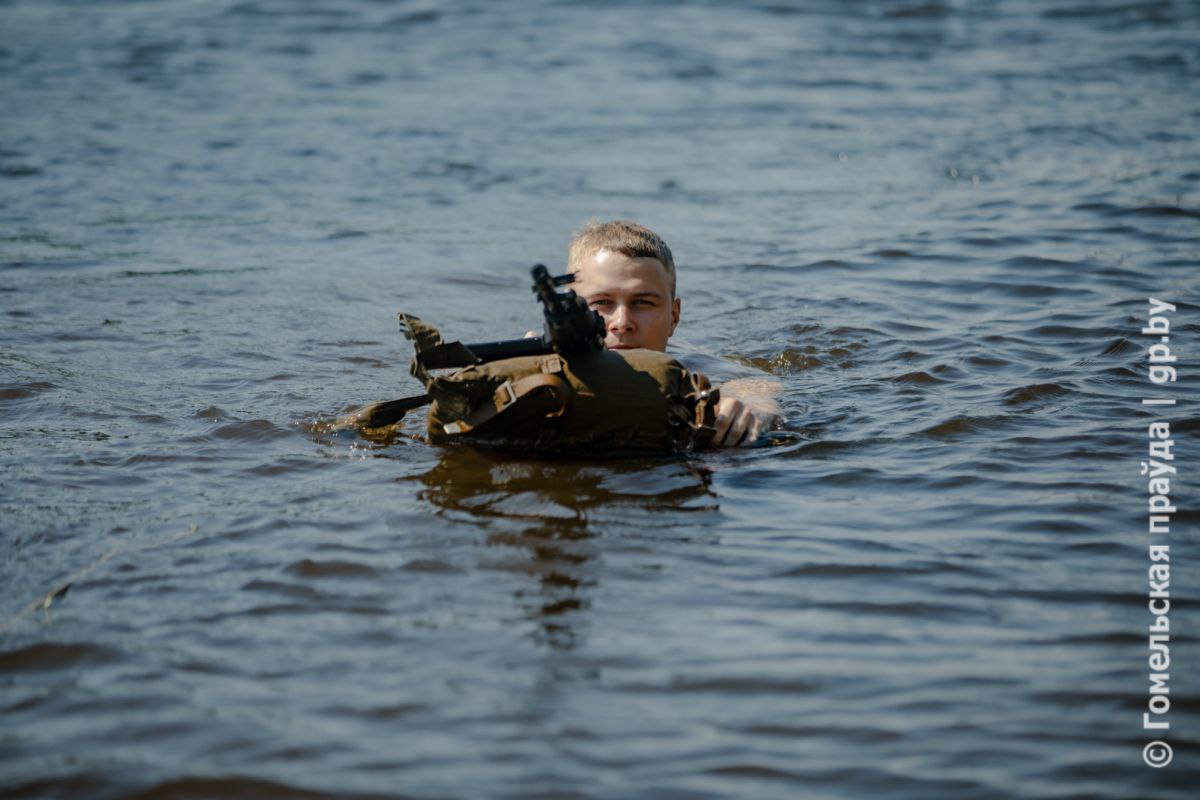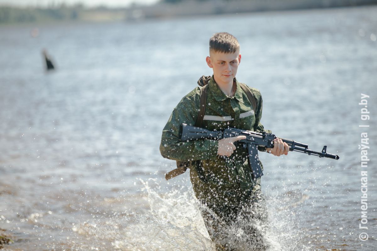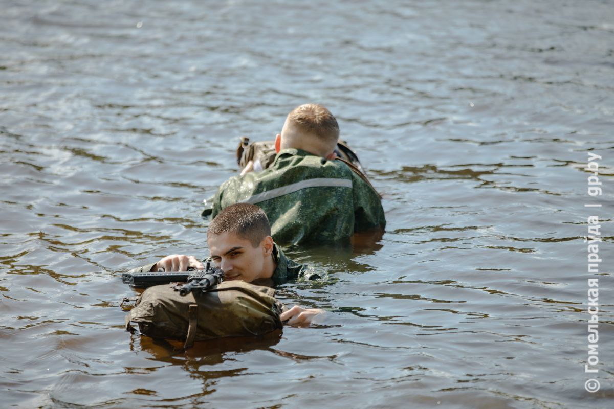 С курсантами военно-транспортного факультета в Белорусском государственном  университете транспорта прошло занятие по преодолению водной преграды в обмундировании и с оружием.