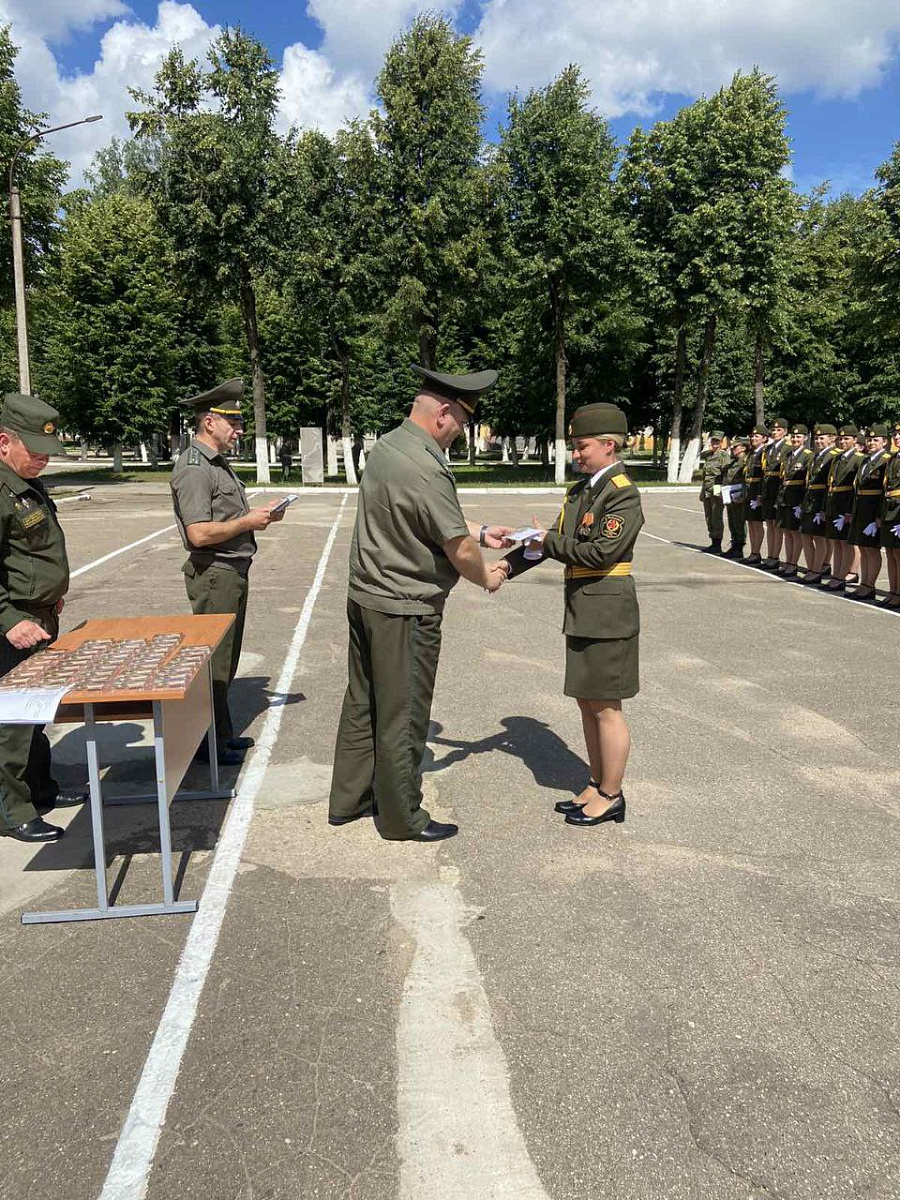 Под руководством заместителя командующего ВВС и войсками ПВО Вооруженных Сил Республики Беларусь полковника Михаила Матросова женский парадный расчет награжден юбилейной медалью «80 лет освобождения Беларуси от немецко-фашистских захватчиков».