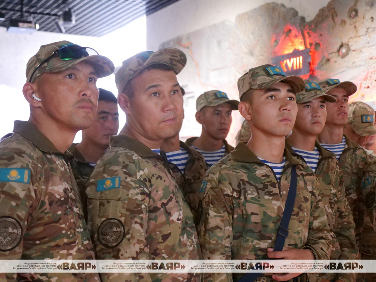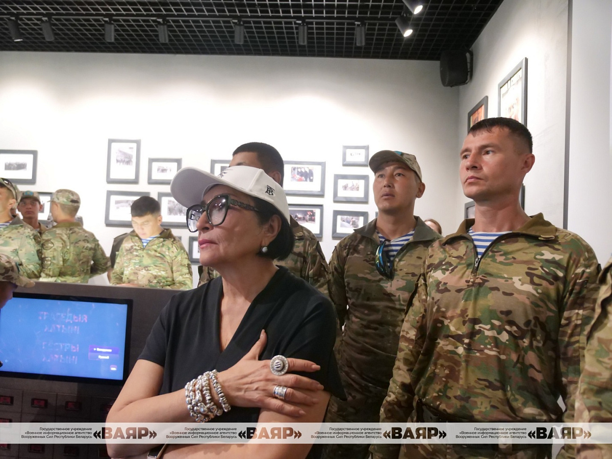 Военнослужащие Республики Казахстан, принимающие участие в военном параде в честь Дня Независимости Республики Беларусь, посетили мемориальный комплекс «Хатынь». Вместе с ними была внучка генерала Ивана Панфилова Алуа Байкадамова.