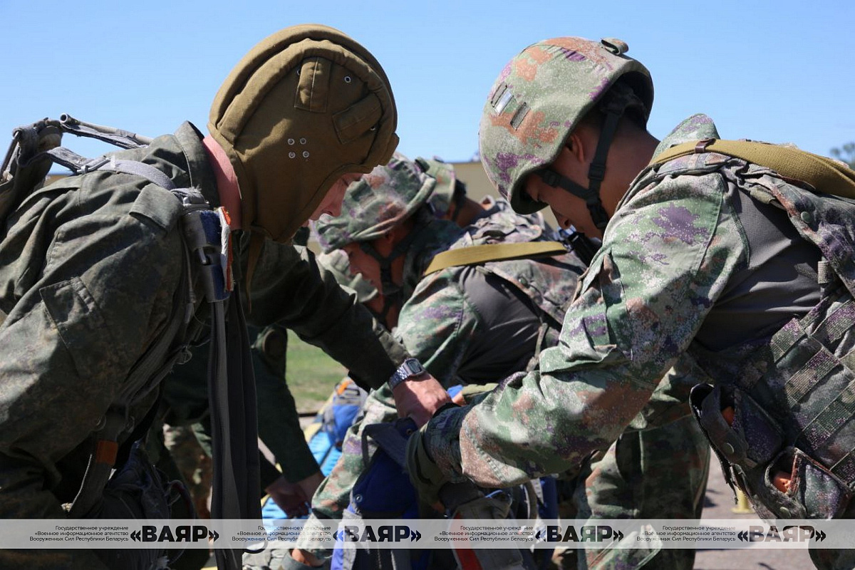 Тренировка проходит в рамках предстоящего десантирования военнослужащих двух стран.