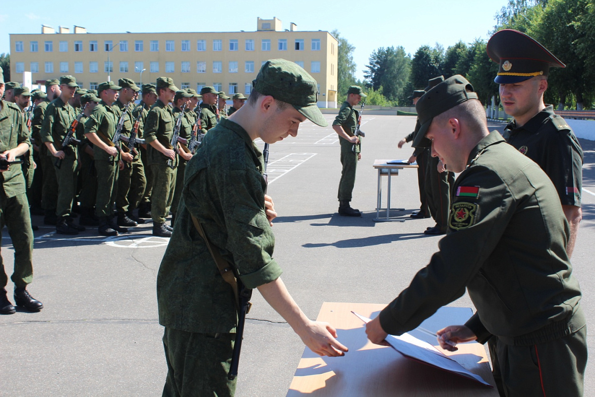 Более 50 военнообязанных, призванных на военные сборы, произнесли слова на верность Родине.