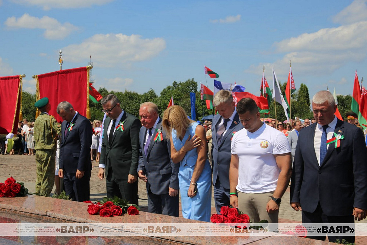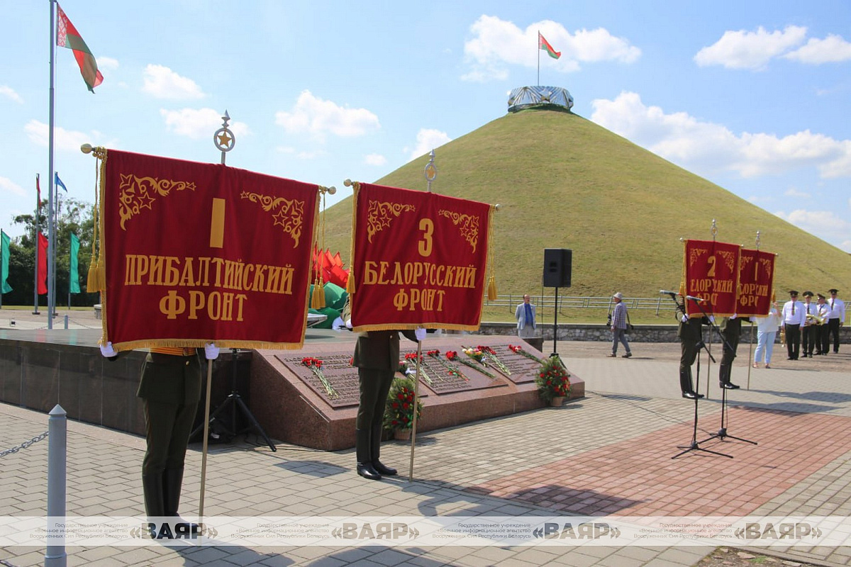 В рамках республиканской информационно-просветительской акции «Дорогами славы» в областном центре Принеманья, в знаковом для каждого гродненца месте – у подножия Кургана Славы, прошел торжественный митинг, посвященный 80-летию освобождения города Гродно в ходе Белорусской стратегической наступательной операции «Багратион». Гродненцы вместе с участниками акции, которые прибыли в город на Немане в ходе автопробега по маршруту операции «Багратион», почтили память павших в годы Великой Отечественной войны военнослужащих, партизан и подпольщиков, мирных граждан минутой молчания и возложили цветы к Вечному огню.