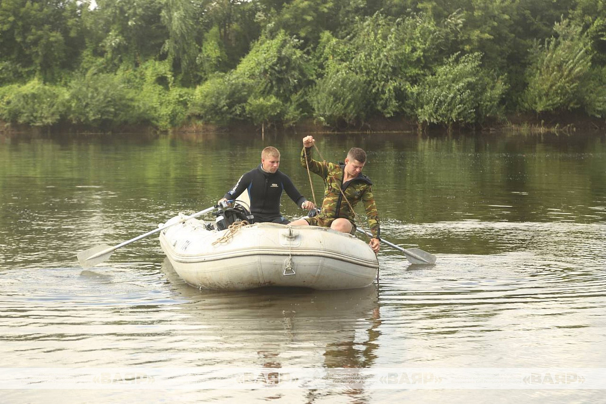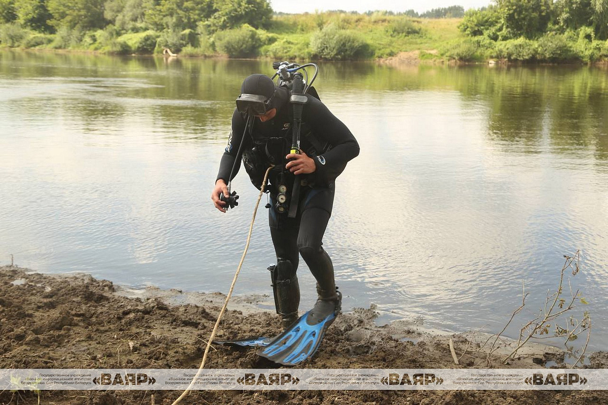 Специалисты разведывательно-водолазного взвода проводят инженерную разведку водной преграды.