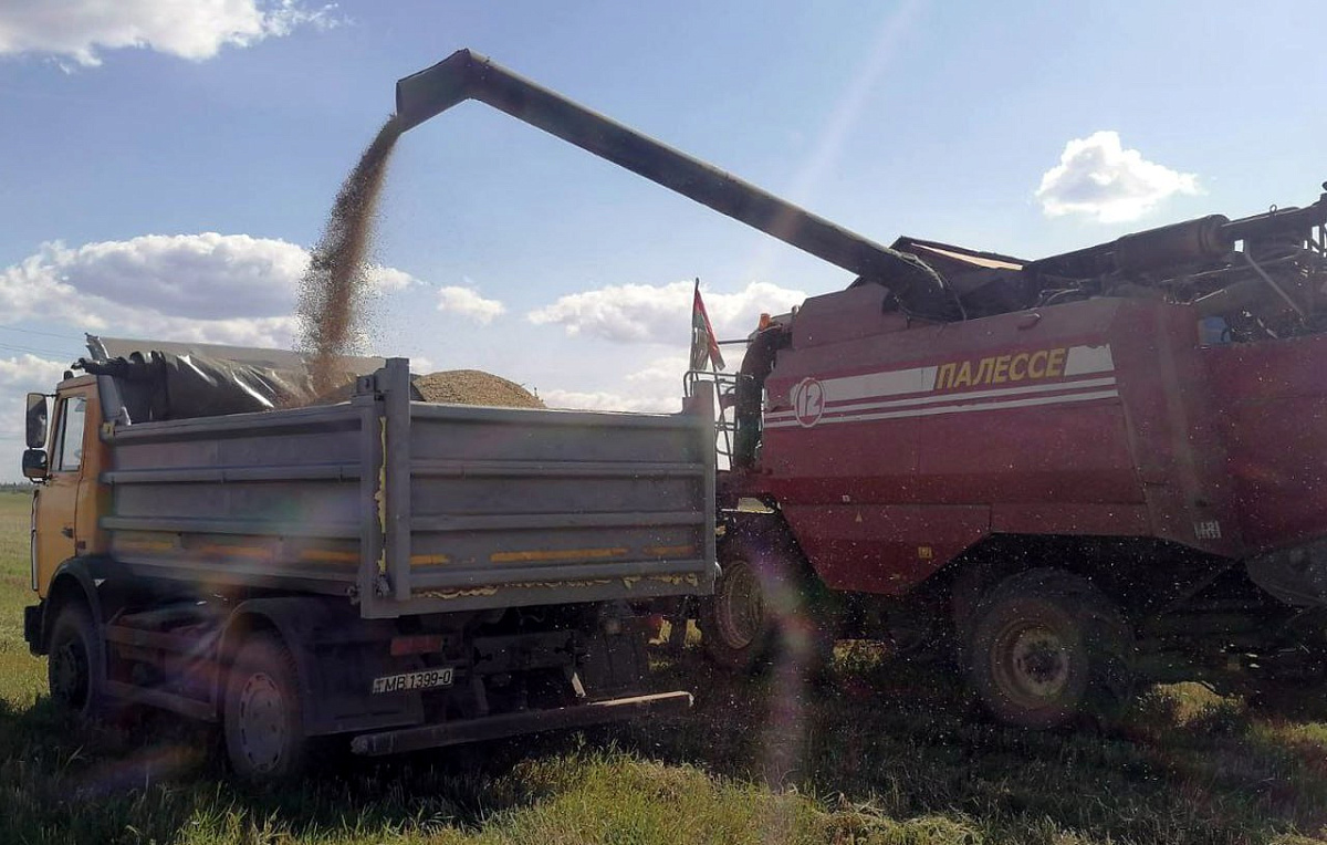 Взвод, сформированный на базе 377-го гвардейского зенитного ракетного полка, трудится на полях Витебской области. В день военные водители выполняют не менее 10 рейсов. Гвардейцы уже помогли убрать с поля почти 1000 тонн зерна.