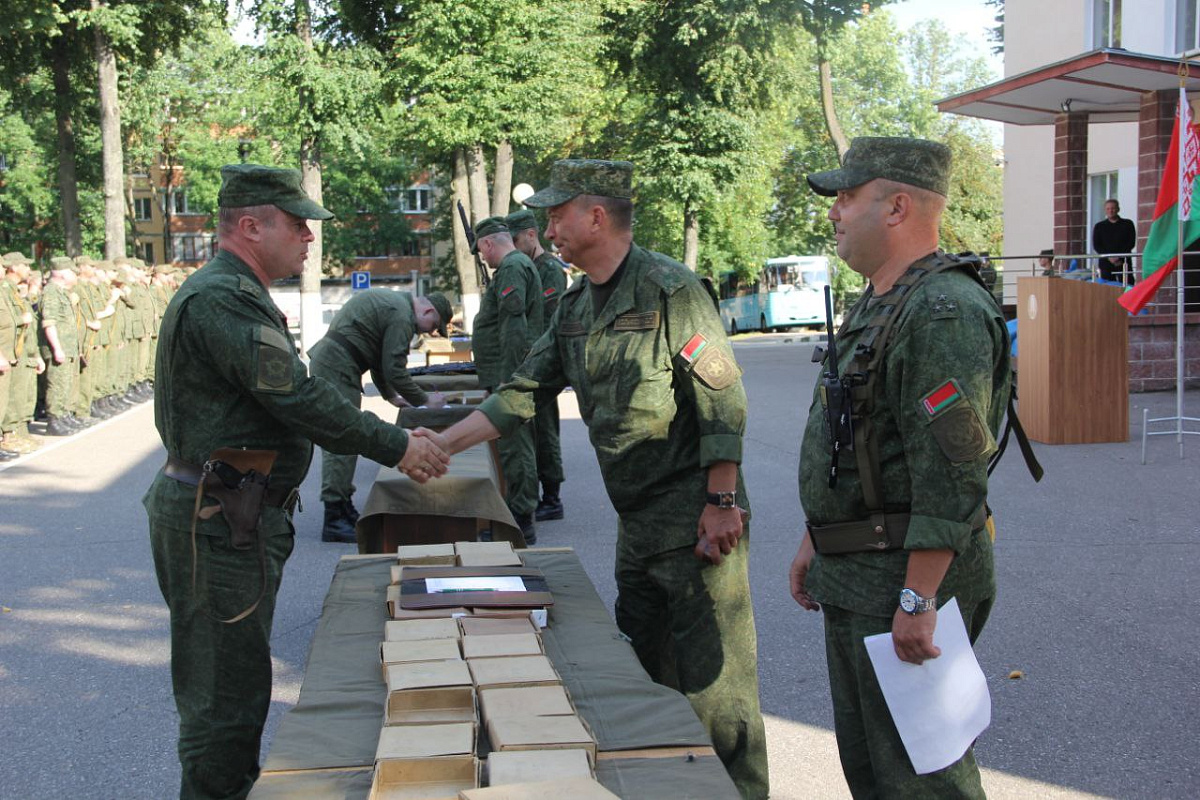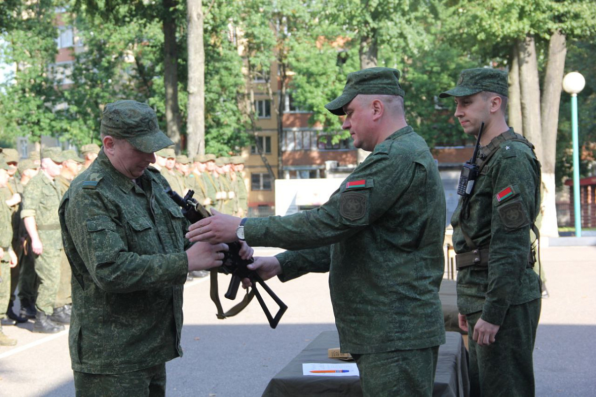 На плацу военного комиссариата Витебской области призванные на мобилизационное учение военнообязанные в торжественной обстановке перед лицом своих товарищей принесли Военную присягу на верность Республике Беларусь и белорусскому народу. Также был проведен ритуал вручения оружия.