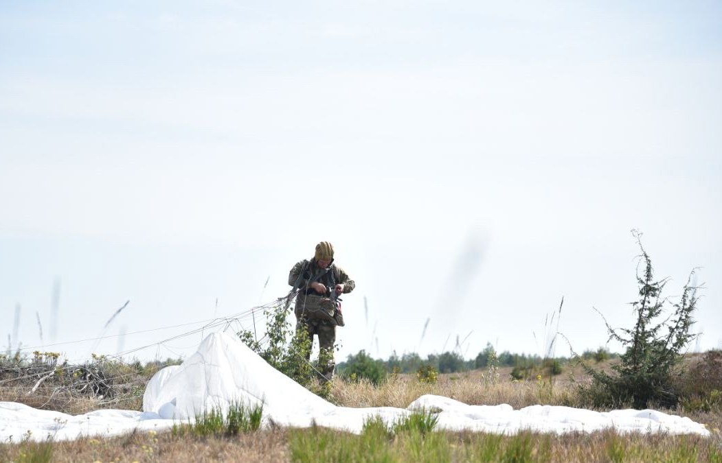 40 военнослужащих бригады совершили прыжок с парашютом с высоты 800 метров впервые.