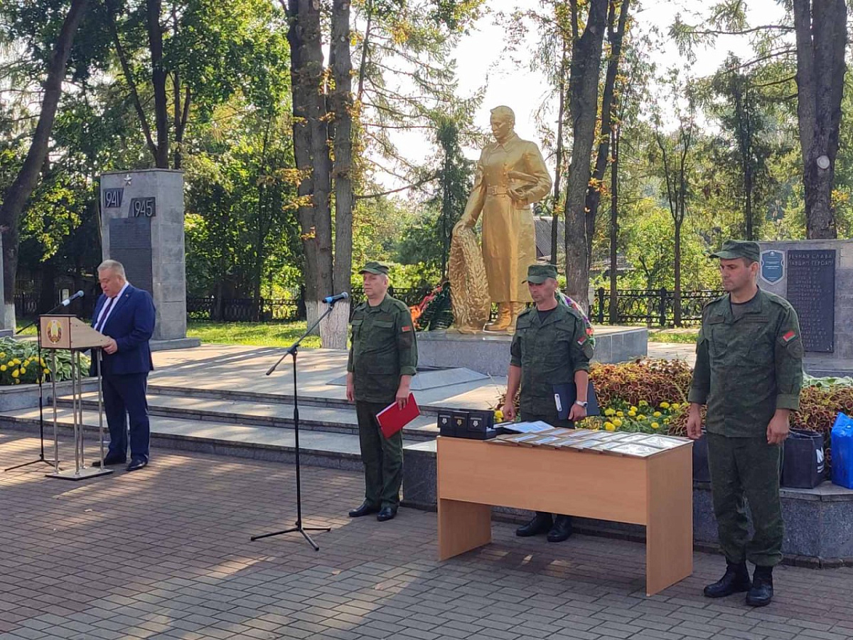 Торжественный митинг, посвященный окончанию учебного сбора территориальных войск Волковысского района, прошел