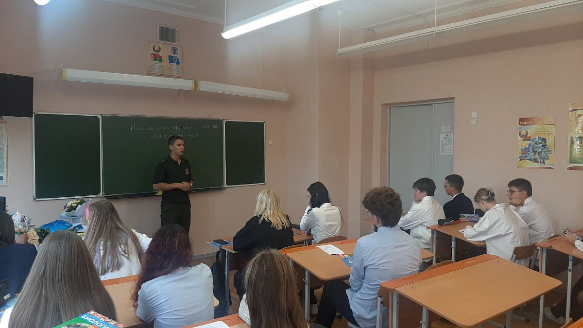 Представители бригады провели для школьников открытый урок, пожелали им успехов, терпения и удачи в новом учебном году.