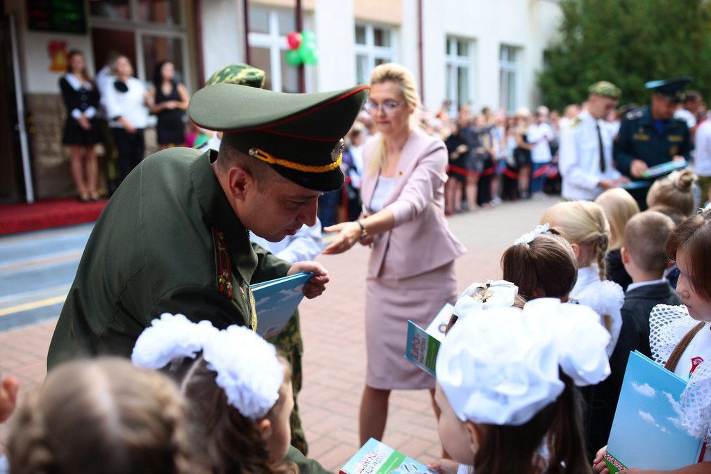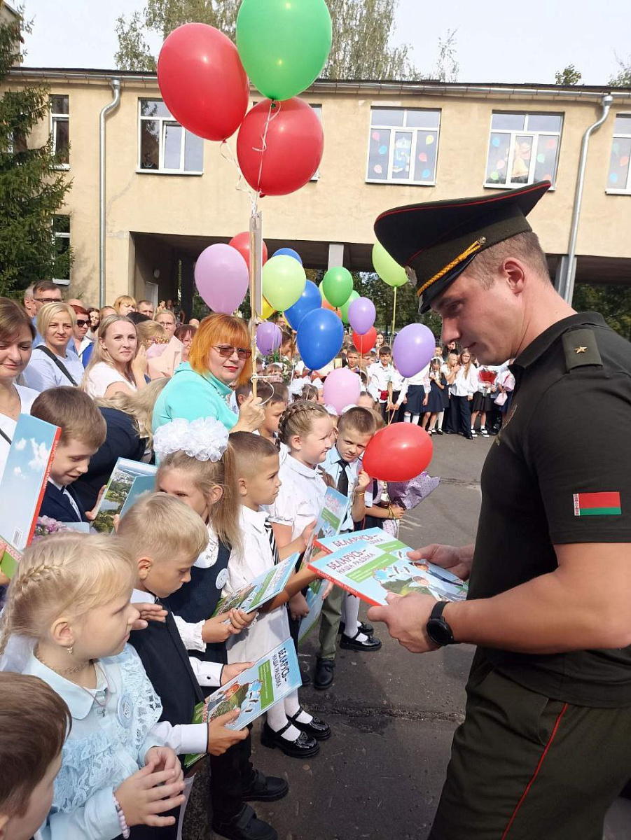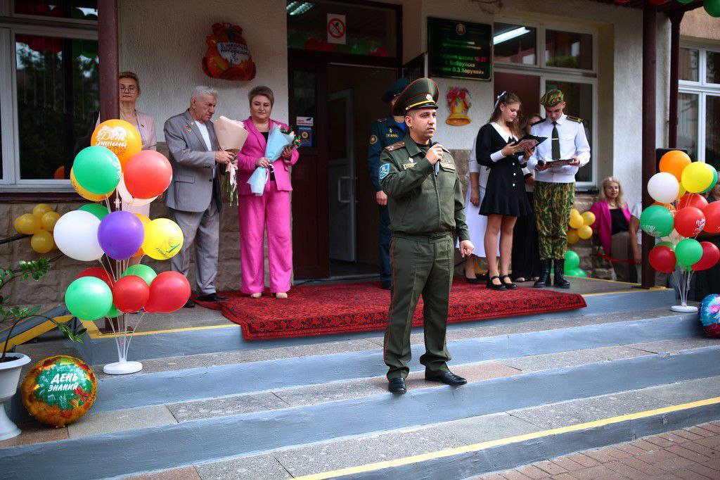 Офицеры 147-го зенитного ракетного полка в День знаний приняли участие в праздничных линейках в средних школах города Бобруйска. Военнослужащие провели для школьников урок на тему «Нам есть чем гордиться, нам есть что беречь».