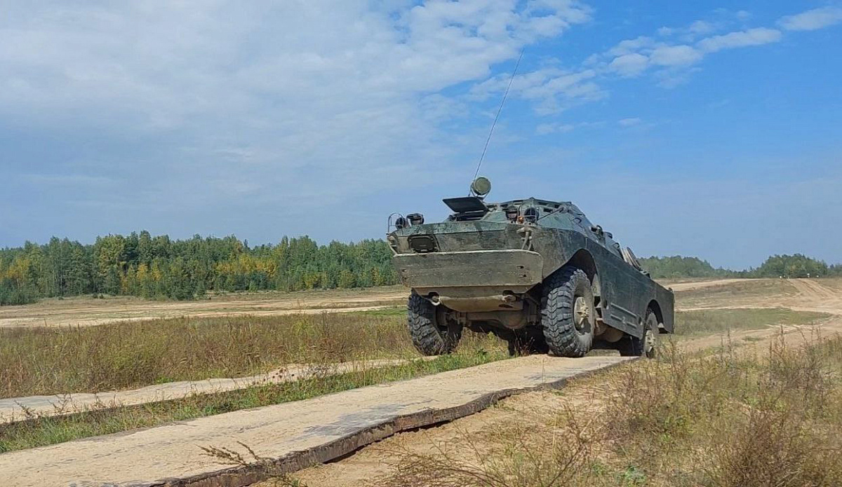 Обучаемые выполняли зачетное упражнение и преодолевали препятствия на танкодроме на БРДМ-2.