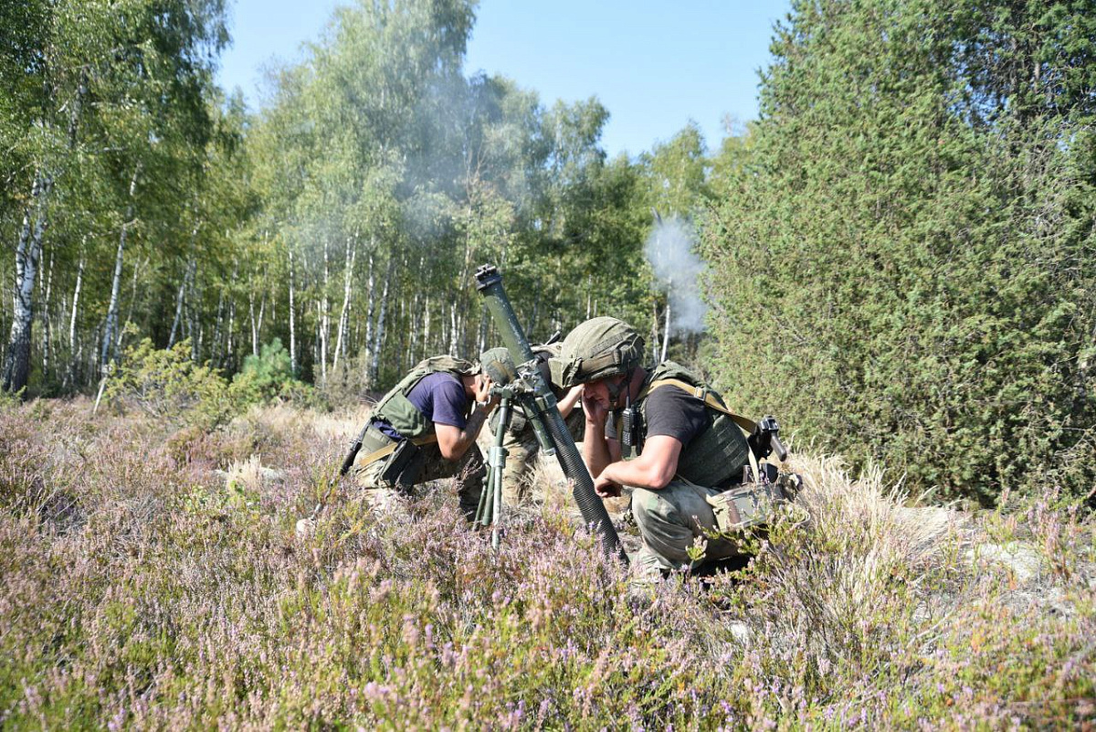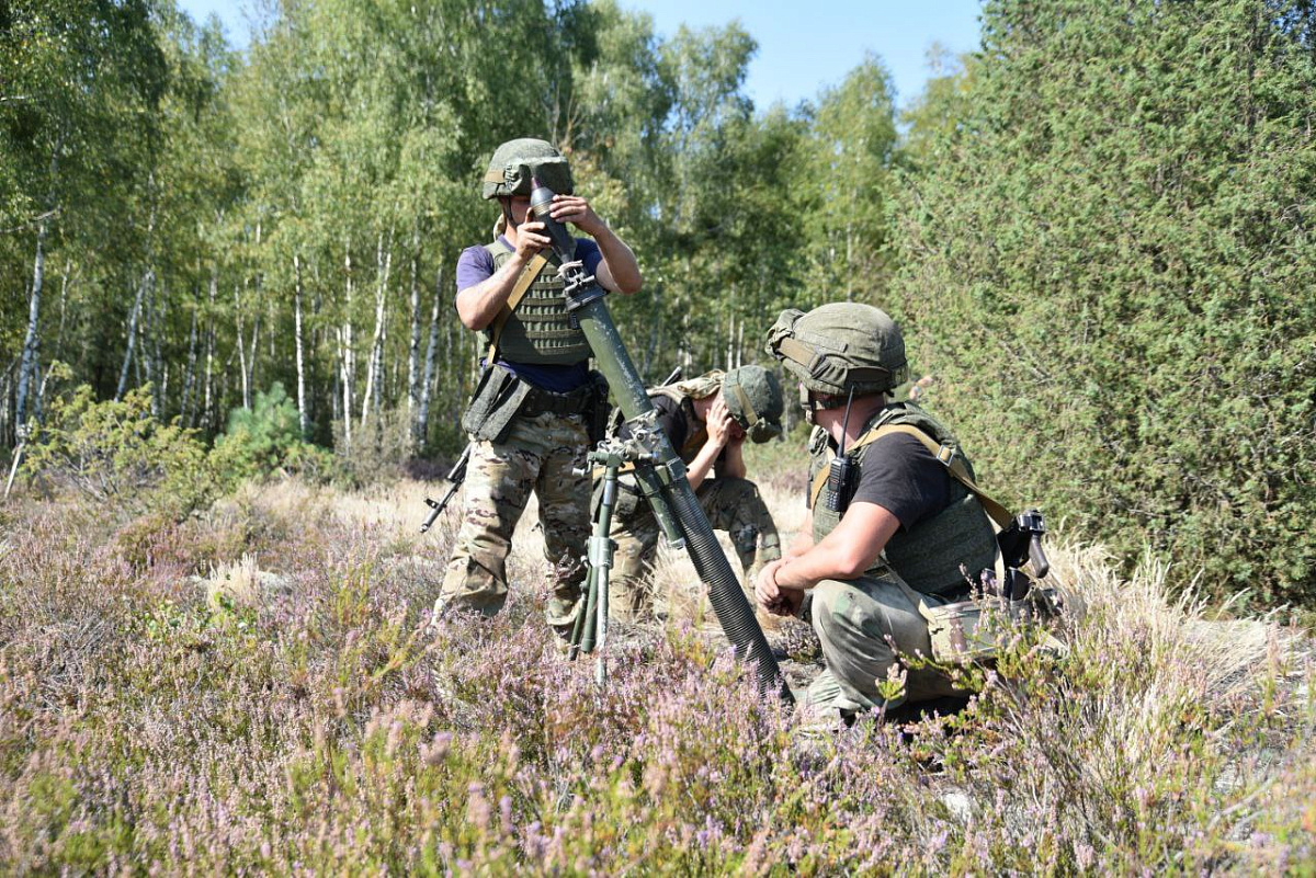 На полигоне Брестский в ходе лагерного сбора артиллерийских подразделений сил специальных операций минометные батареи 2Б24 выполнили огневые задачи.