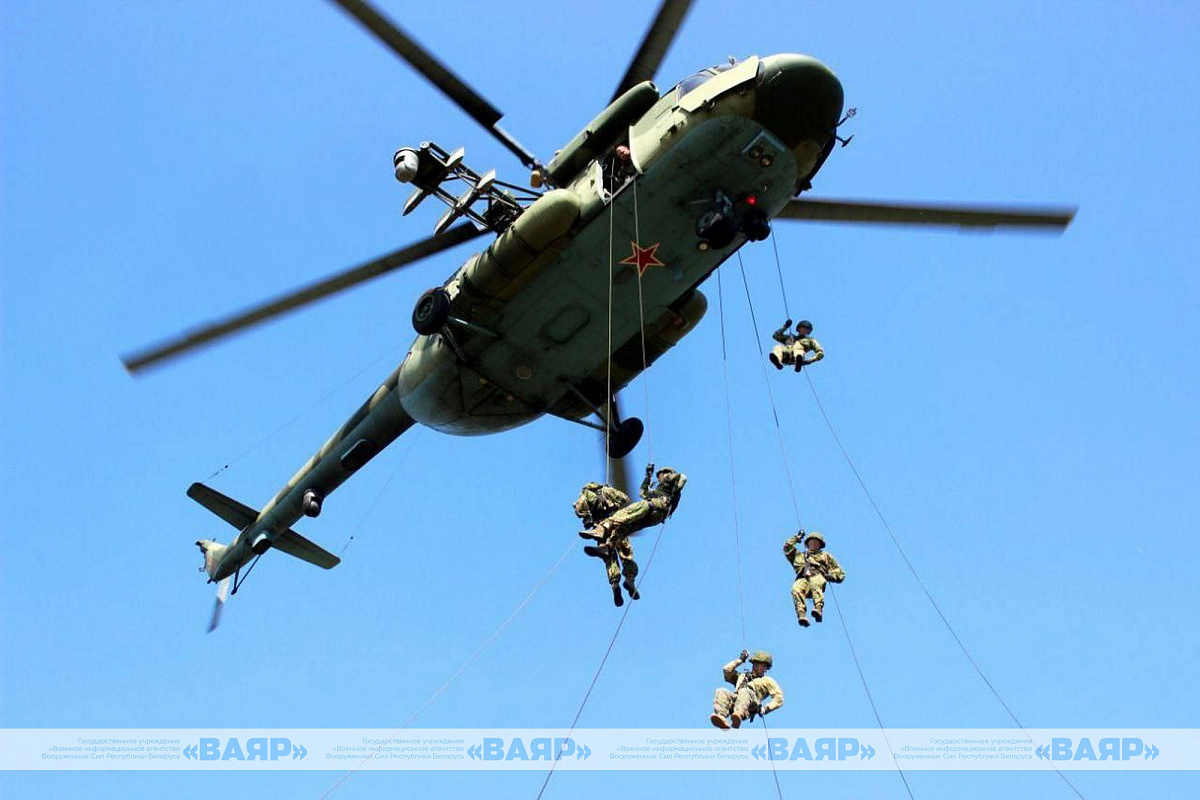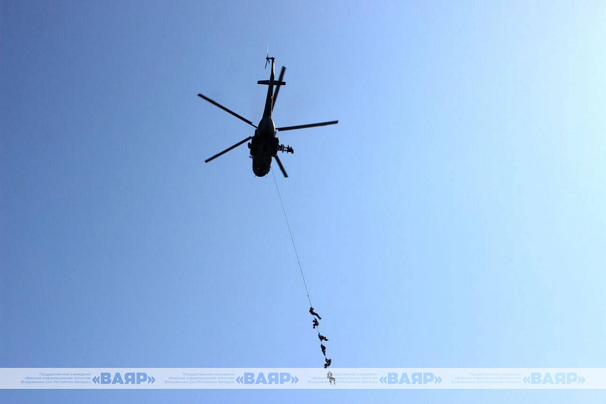 Завершился сбор десантированием спецназовцев из вертолета Ми-8МТВ-5 с использованием альпинистских веревок и специального десантного каната.