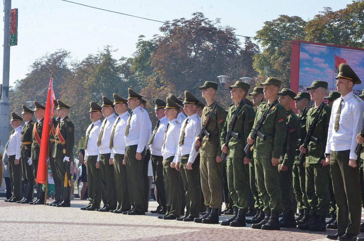 Торжественная церемония прошла на площади Восстания у подножья монумента воинам-освободителям в Гомеле. З.Слова клятвы на верность Родине произнесли более 50 курсантов.