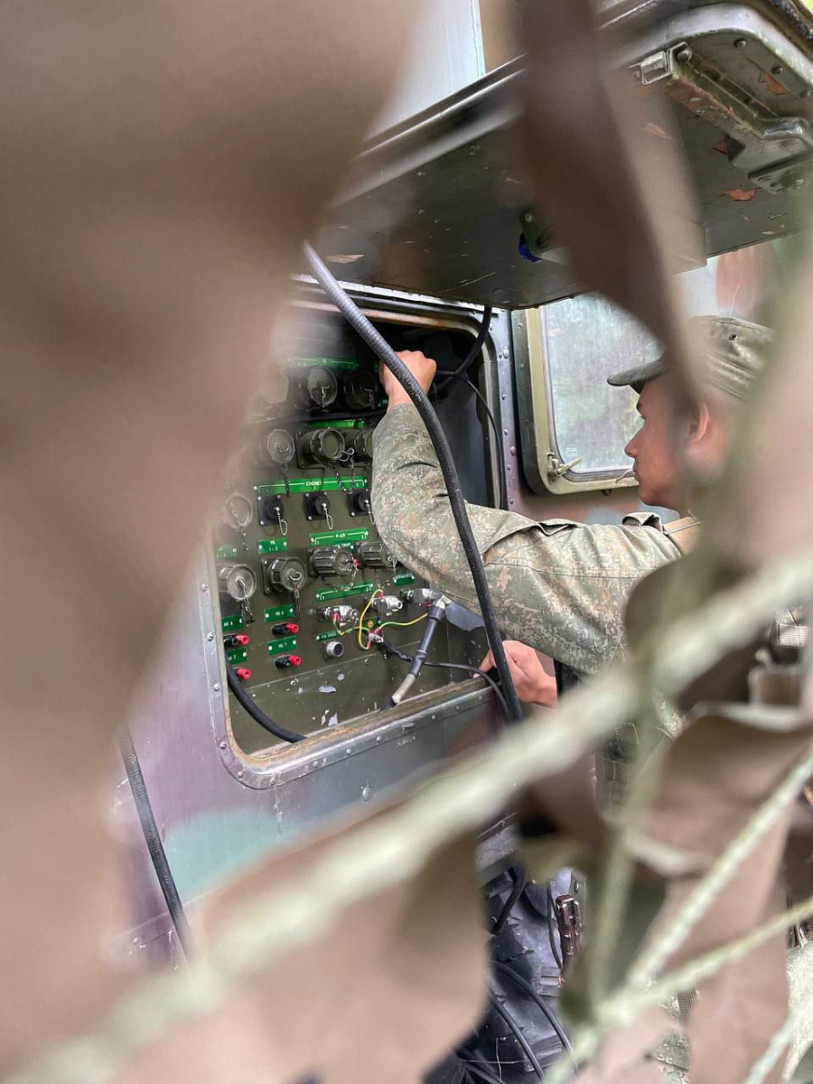 Личный состав роты связи 36-й дорожно-мостовой бригады принимает участие в оперативно-специальном учении войск связи.