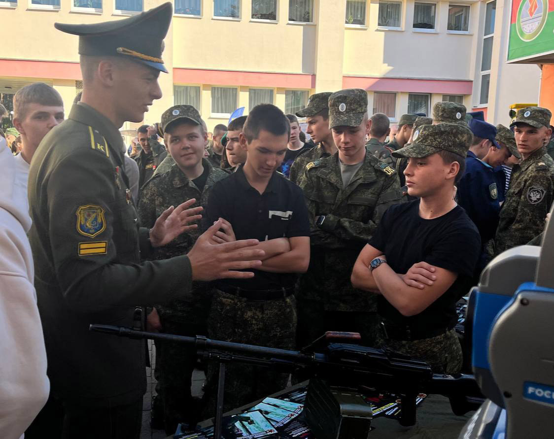 Курсанты и офицеры Военной академии Республики Беларусь и военных факультетов в гражданских вузах организовали для ребят выставку военной техники.