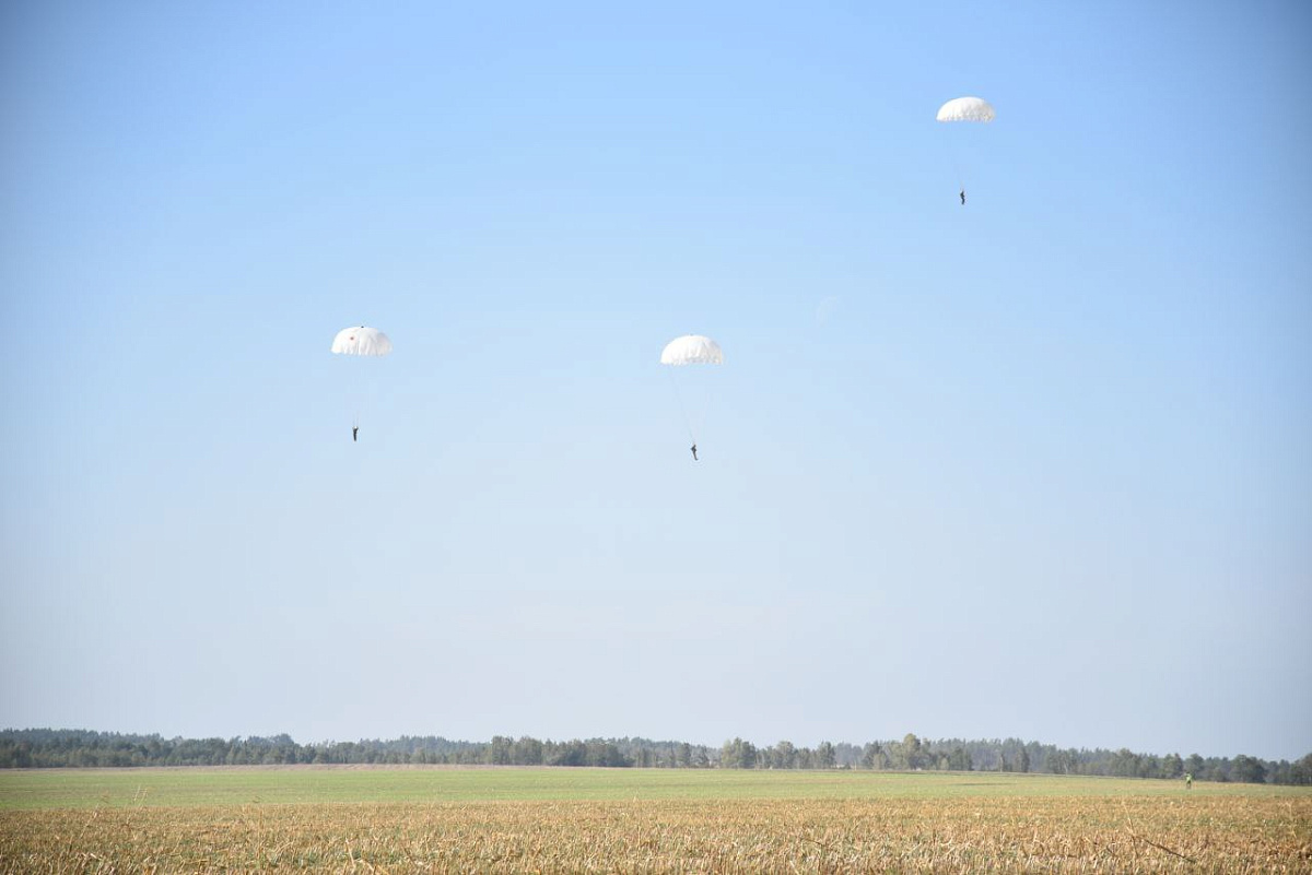 Военнослужащие 38-й Брестской отдельной гвардейской десантно-штурмовой бригады совершили прыжки с парашютом.