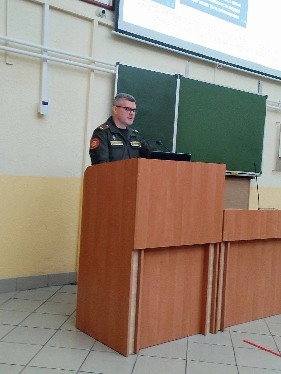 Начальник отдела главного управления идеологической работы Министерства обороны Республики Беларусь подполковник Александр Иванов провел занятие с курсантами военно-медицинского института в учреждении образования «Белорусский государственный медицинский университет».