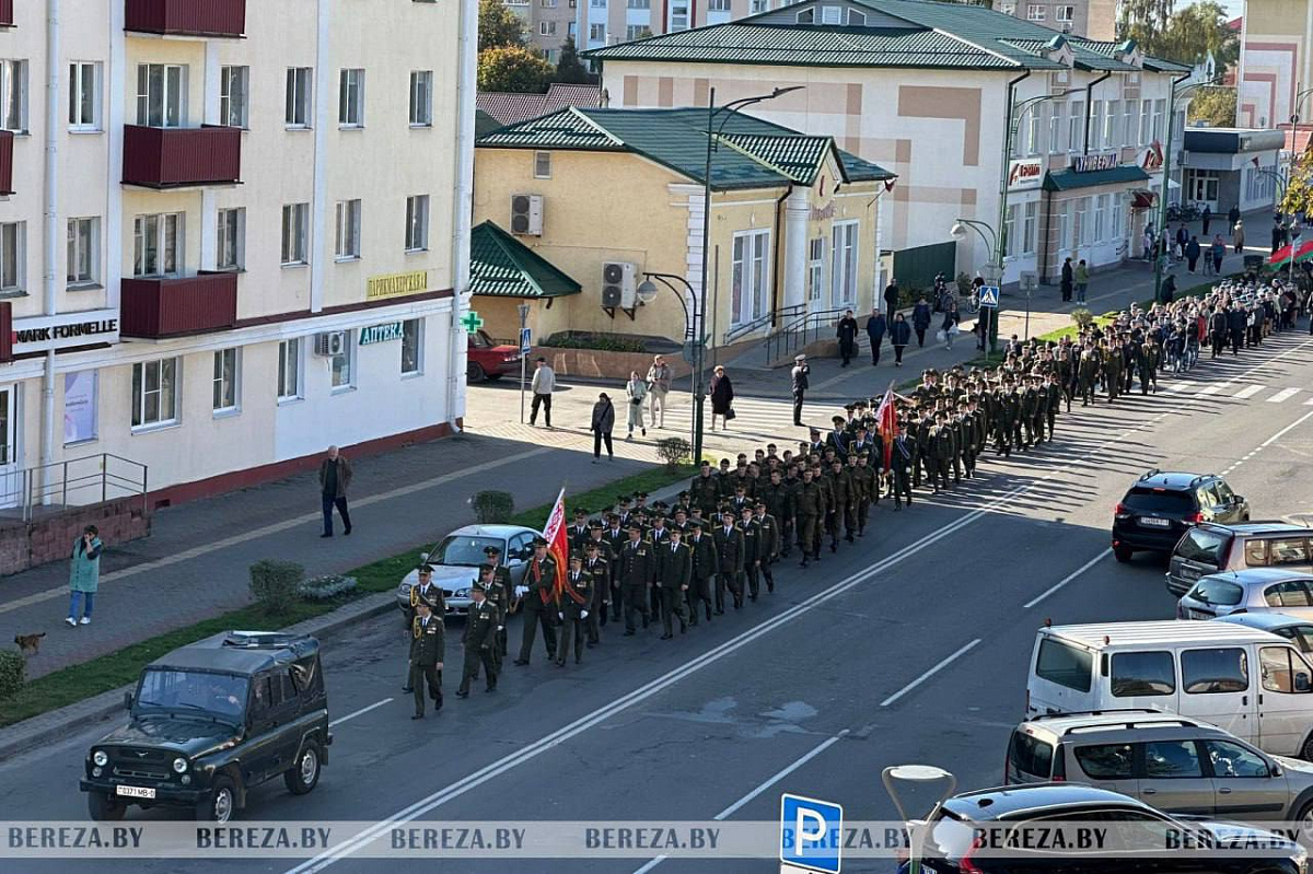 В Духовно-патриотическом комплексе Березы состоялся торжественный митинг. Праздничная атмосфера продолжилась шествием по центральной улице города, где в едином строю прошли военнослужащие, учащиеся и представители трудовых коллективов.