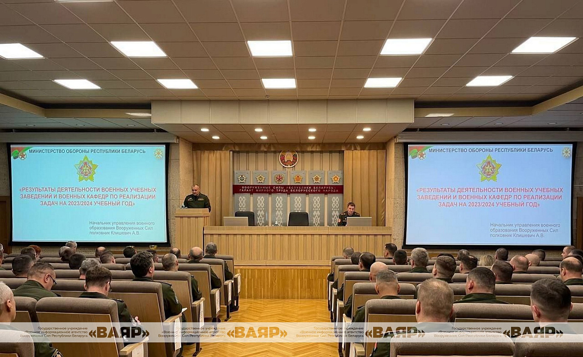 В управлении военного образования Вооруженных Сил Беларуси состоялось подведение итогов за 2023/2024 учебный год, перед участниками мероприятия выступил начальник управления военного образования Вооруженных Сил полковник Андрей Клишевич.