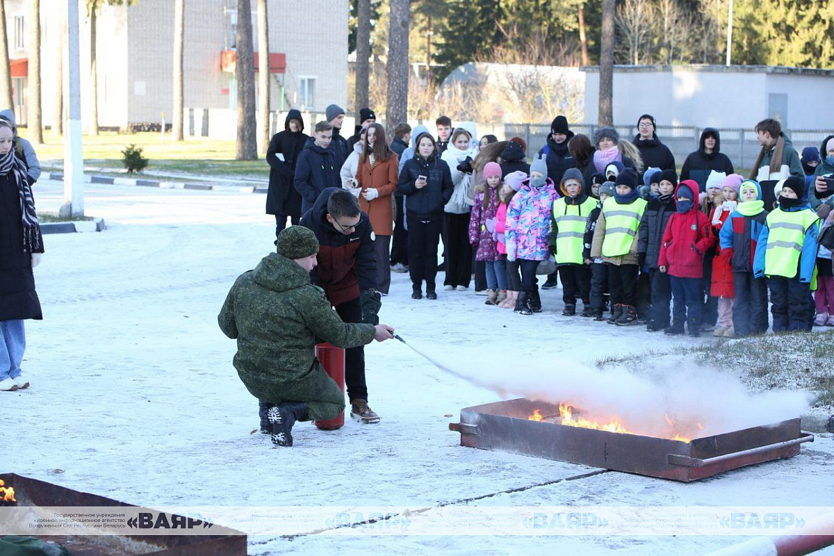 В завершении мероприятия свои умения показал расчет военной команды противопожарной защиты и аварийно-спасательных работ. Напоследок гости отведали каши с чаем и конфетами, с ребятами из патриотического класса школы № 19 провели профориентационную беседу на предмет возможного поступления в военные учебные заведения Республики Беларусь.