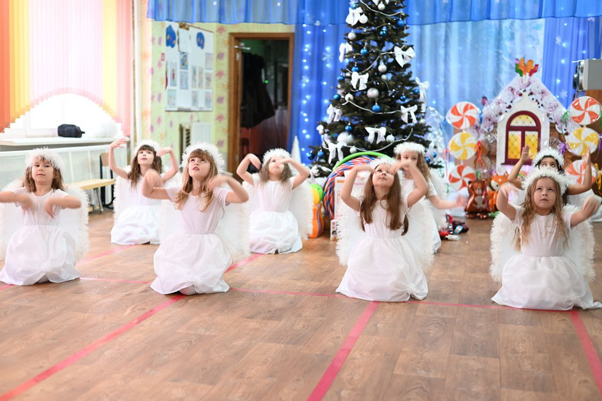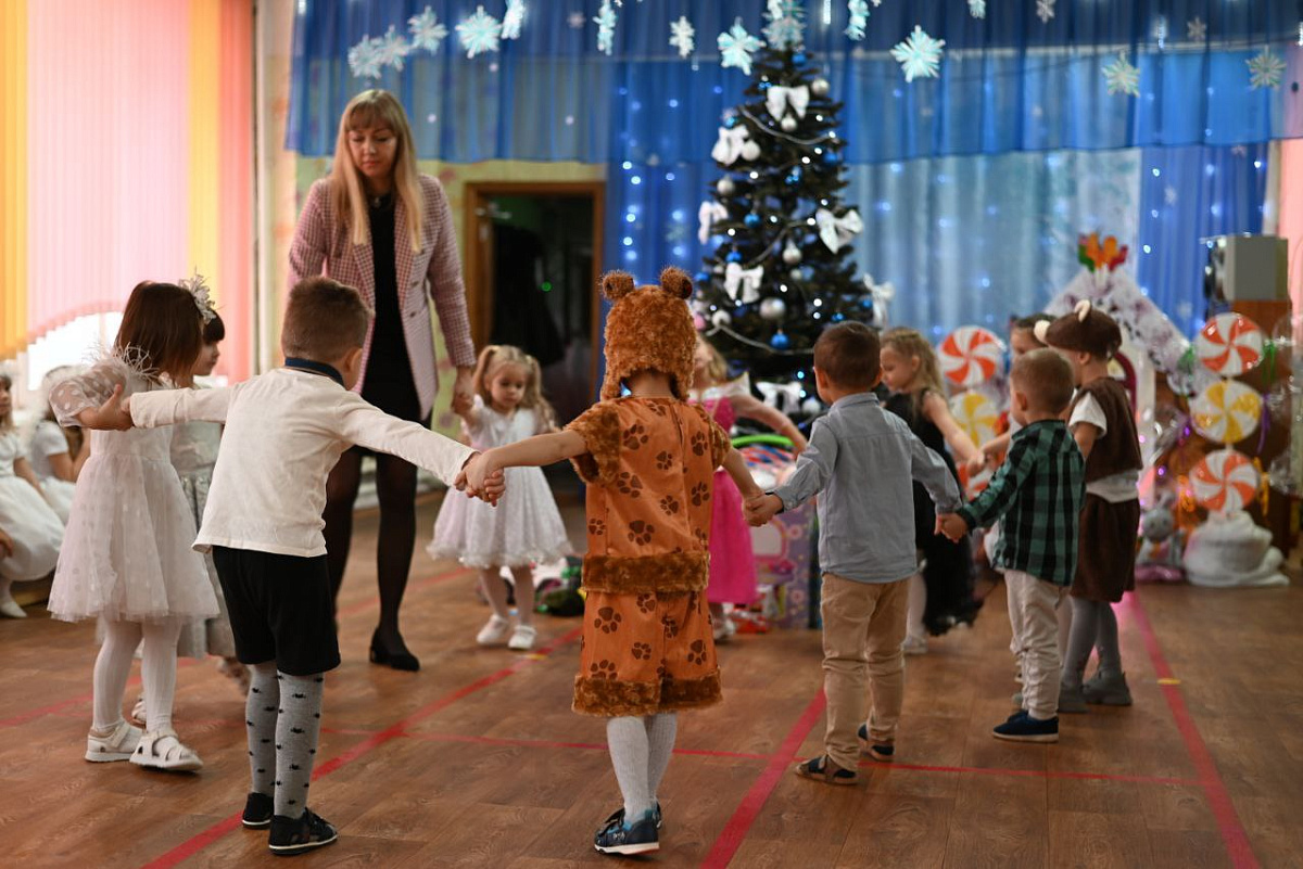 Военнослужащие поздравили малышей с наступающим праздником, потанцевали с ними у елки, подарили подарки, а они в свою очередь отблагодарили военных замечательными новогодними песнями и танцами.
