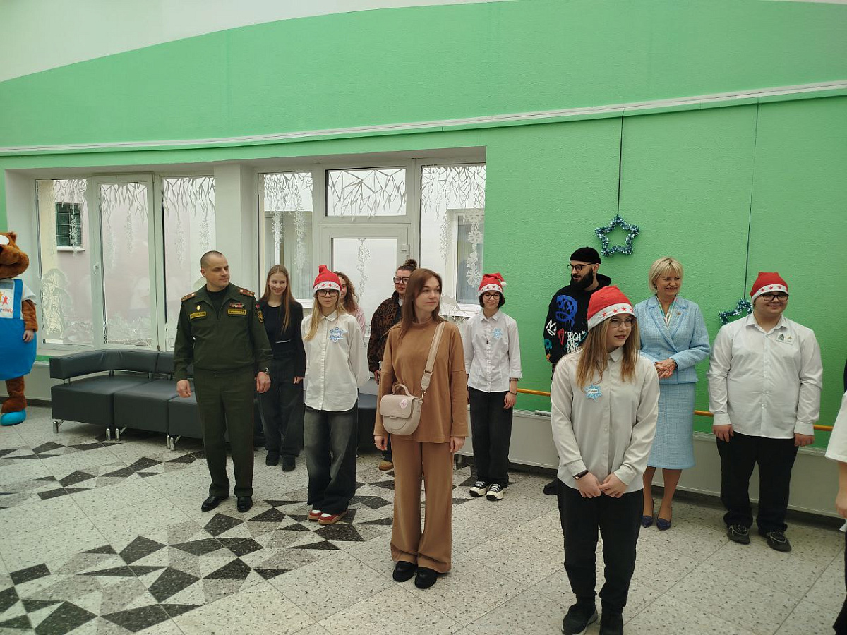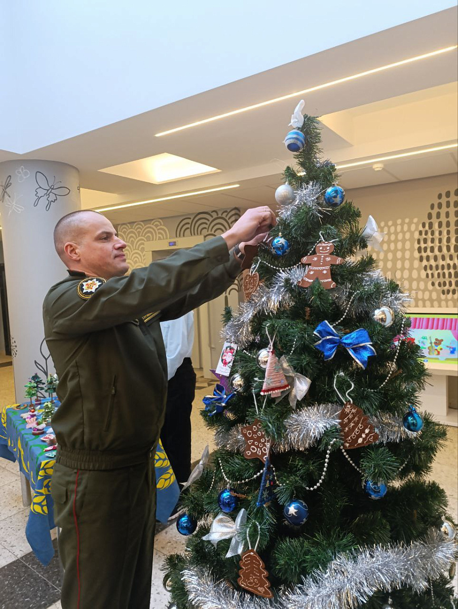 Военнослужащие поздравили воспитанников реабилитационного центра с наступающим Новым годом и Рождеством и вручили детям подарки для занятия спортом и творчеством.