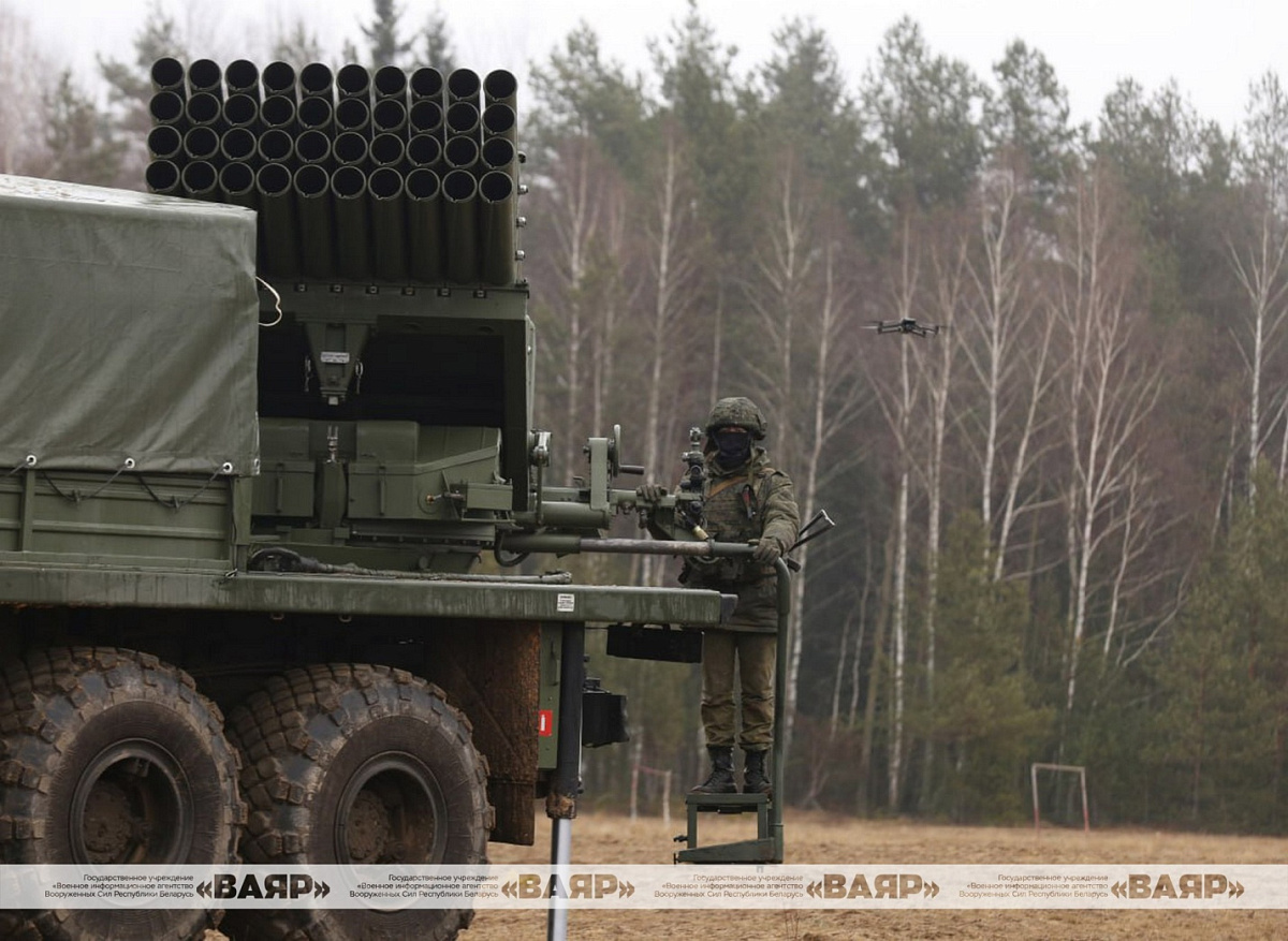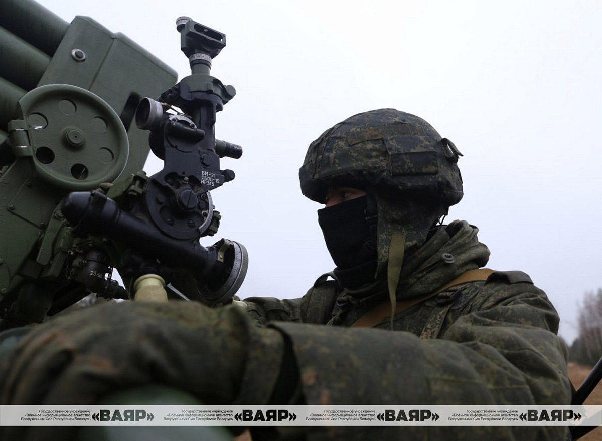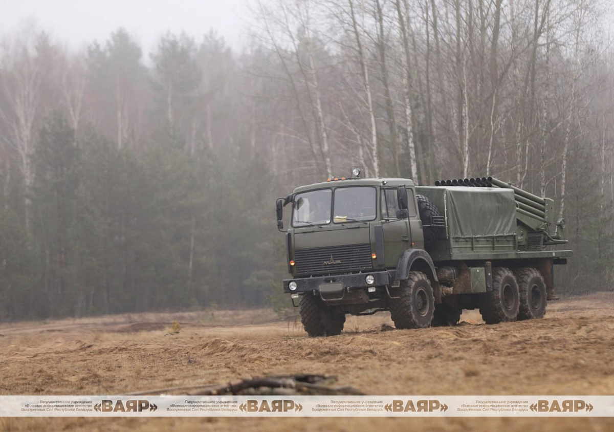 На Осиповичском полигоне проходит полевой выход с военнослужащими одного из подразделений 51-й гвардейской артиллерийской бригады на РСЗО БМ-21Б «БелГрад».