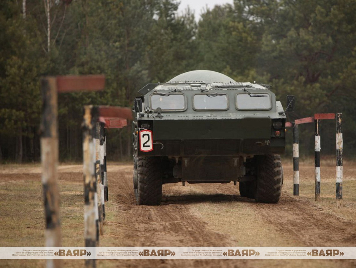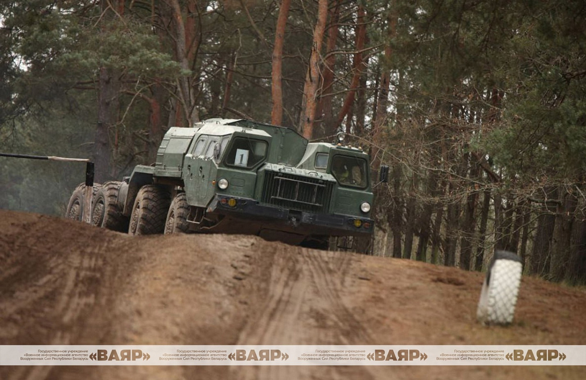 На автодроме будущие механики-водители МАЗ-543, МАЗ-537, БАЗ-5921 и МТЛБ выполняют различные элементы: «габаритный коридор», «бокс», «змейка», «тупиковая эстакада» и другие.