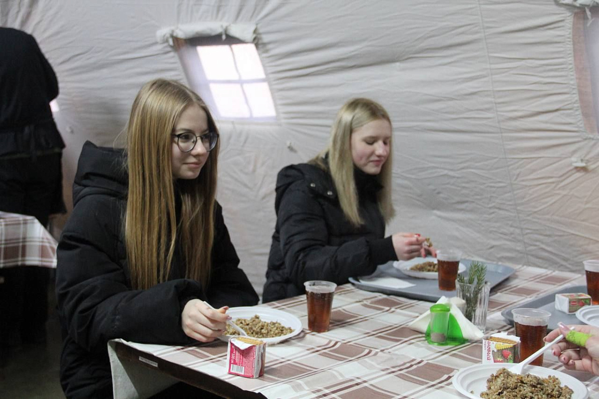 Для юных патриотов была развернута выставка оружия, а также показательное выступление четвероногих друзей из кинологического центра. Ну и конечно же не обошлось без традиционного угощения солдатской кашей и горячим чаем с печеньем.