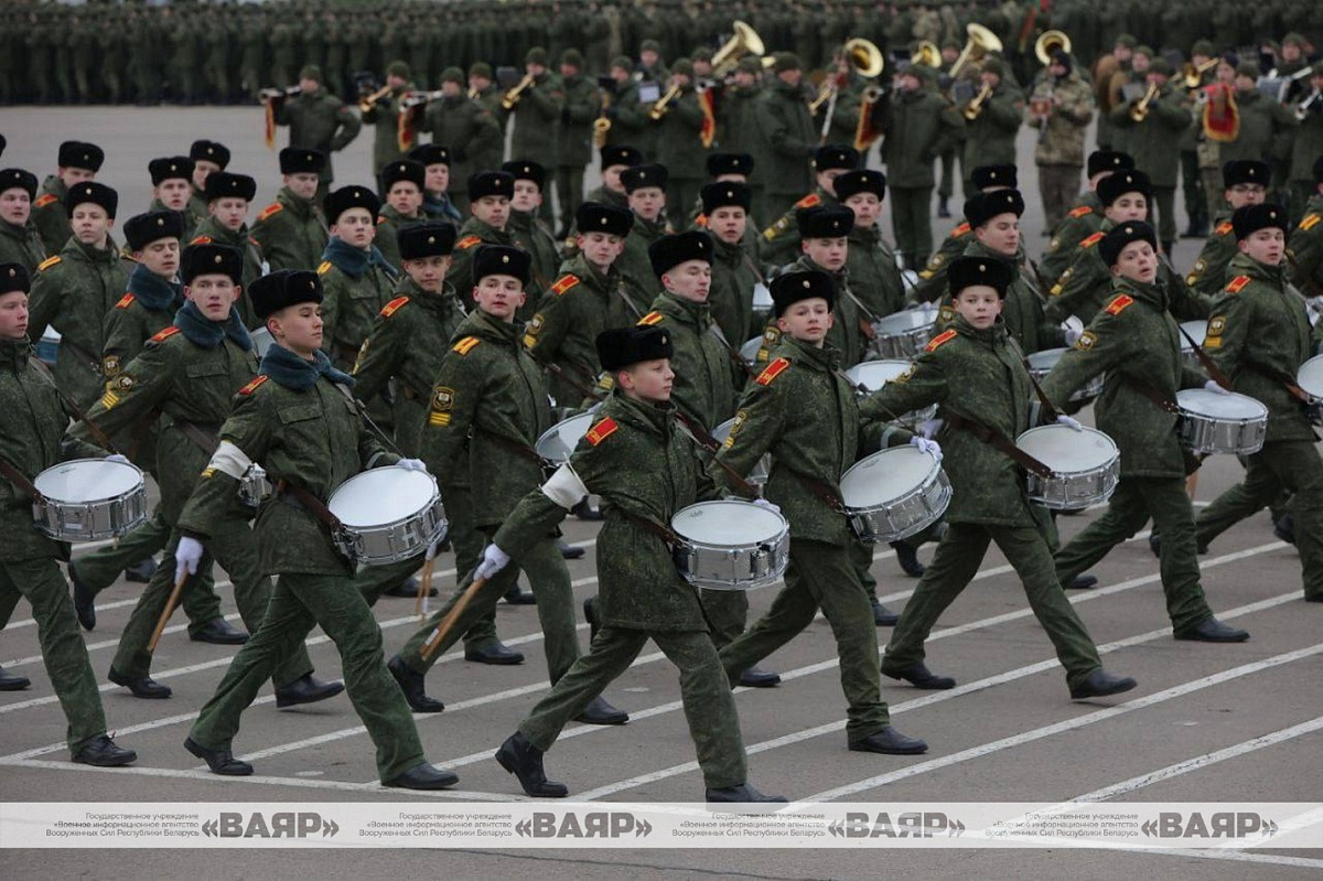 Военнослужащие Вооруженных Сил, суворовцы и представители МЧС готовятся продемонстрировать свою строевую выправку на военном параде в Минске.