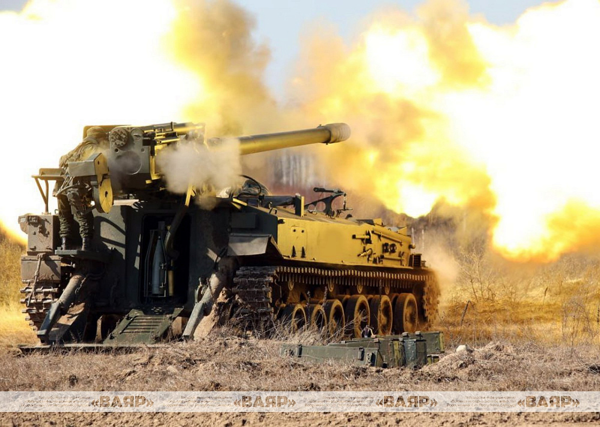 Главное событие мероприятия – боевая стрельба из 152‑мм гаубицы 2A65 «Мста-Б», самоходных пушек 2С5 «Гиацинт», РСЗО БМ‑21 «Град» и «Ураган».