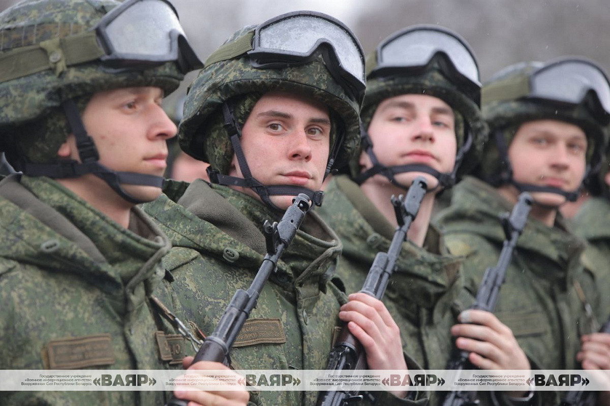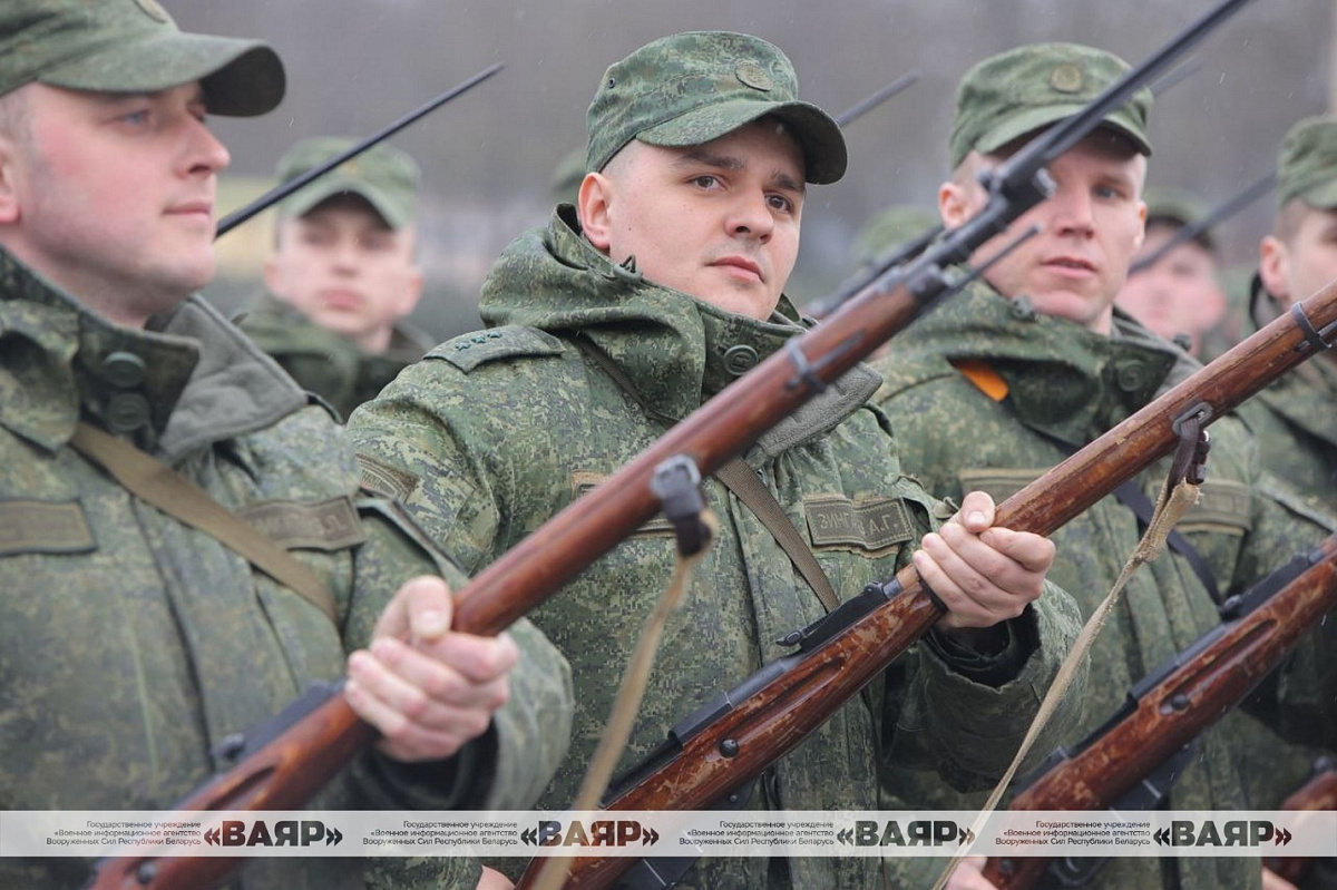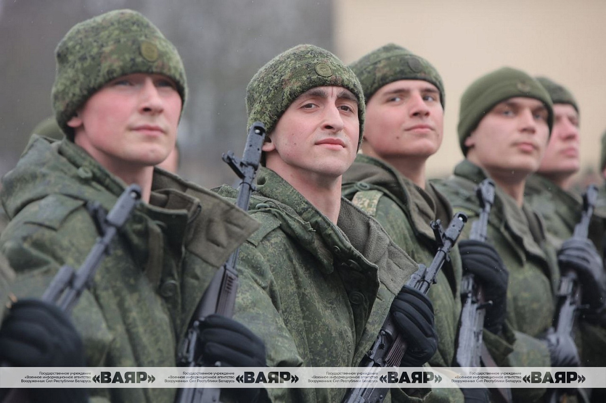 Участники готовятся продемонстрировать свою строевую выправку на военном параде в Минске.