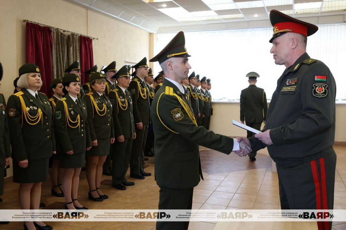 С новым этапом в службе младших офицеров поздравили начальник Военной академии Республики Беларусь генерал-майор Андрей Горбатенко и начальник факультета повышения квалификации и переподготовки кадров Военной академии Республики Беларусь полковник Алексей Лунь.