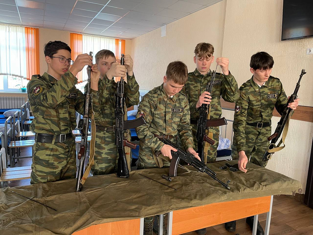 В ходе занятий ребята отрабатывают четкий строевой шаг и слаженность движений, порядок неполной разборки и сборки стрелкового оружия, снаряжение магазина патронами, основы первой медицинской помощи.