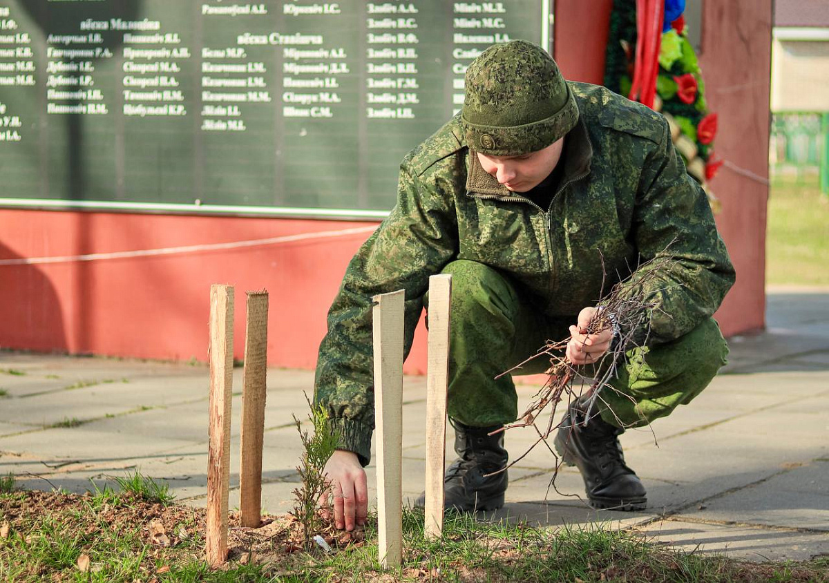 Военнослужащие отдельного гвардейского механизированного батальона 120-й отдельной гвардейской механизированной бригады приняли участие в районном субботнике в Осиповичах.