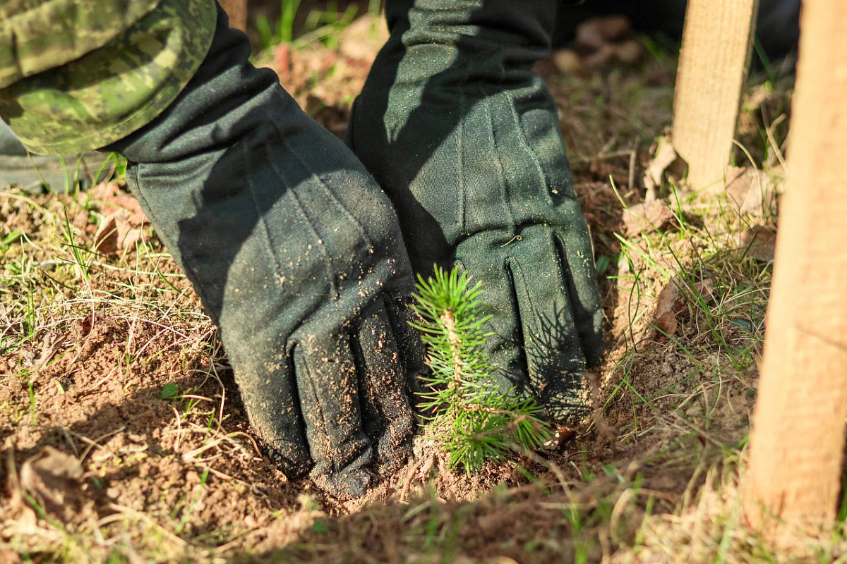 Гвардейцы убрали мусор, сухие ветки, старую листву, посадили деревья у мемориала «Мать провожает сына».