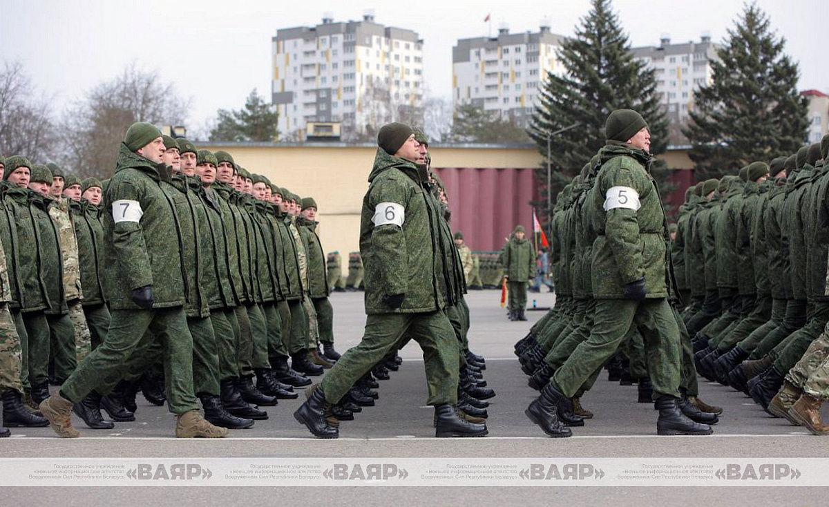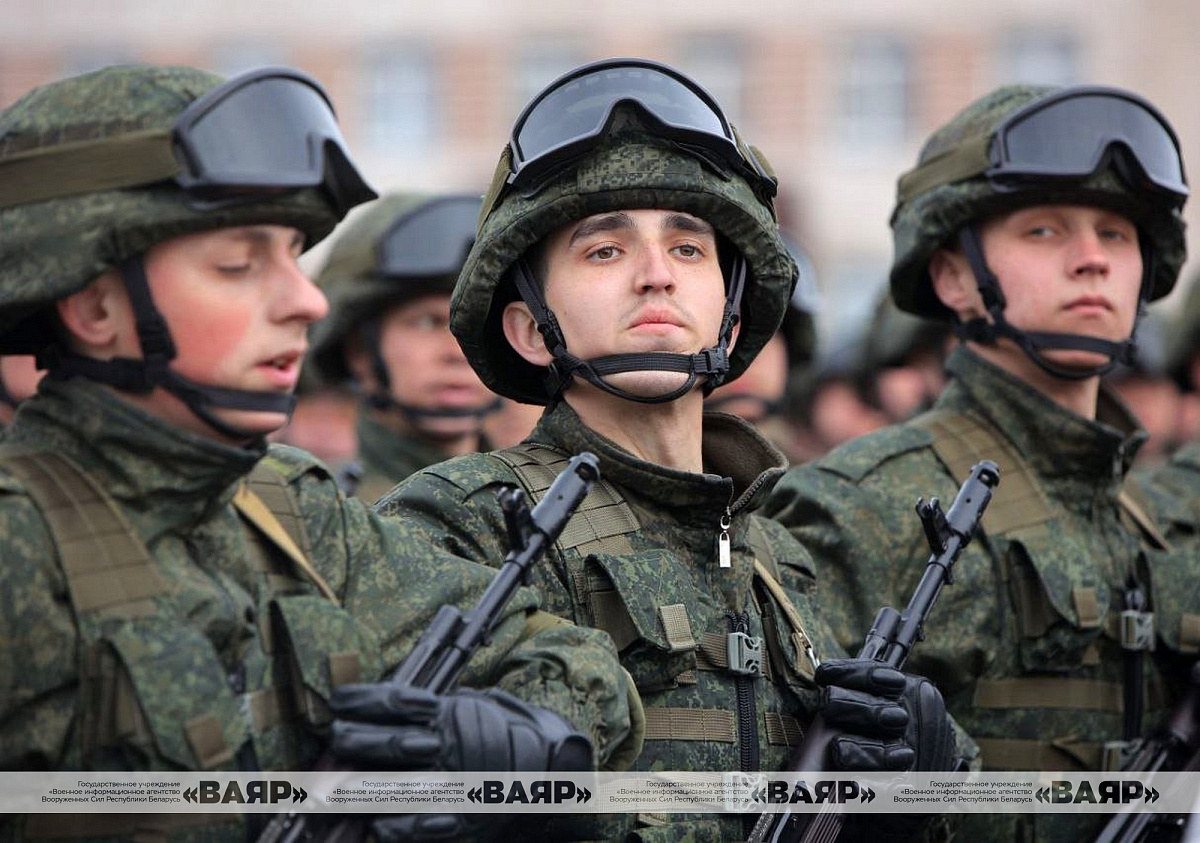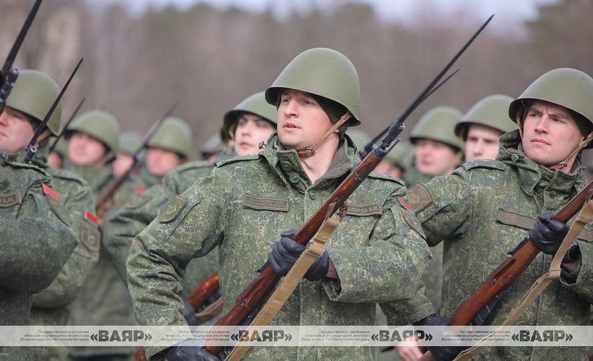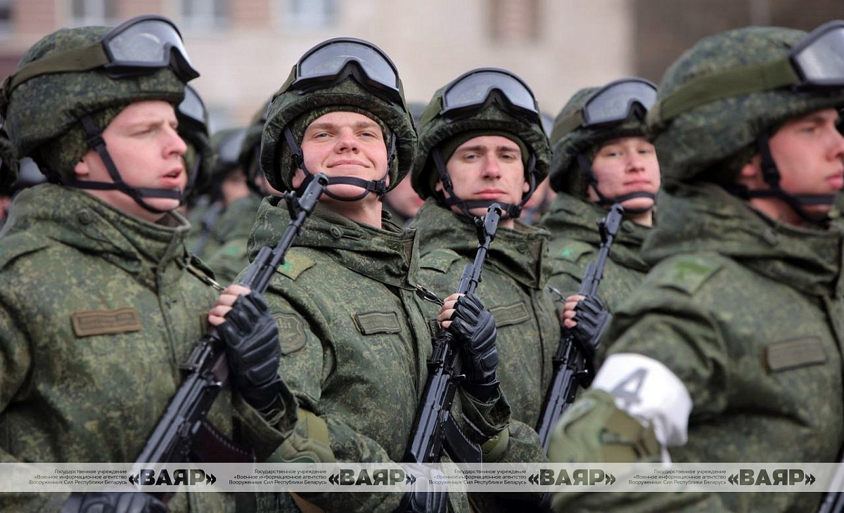 В Минской военной комендатуре прошла очередная тренировка расчетов пешей колонны к параду войск Минского гарнизона 9 Мая — в День Победы.