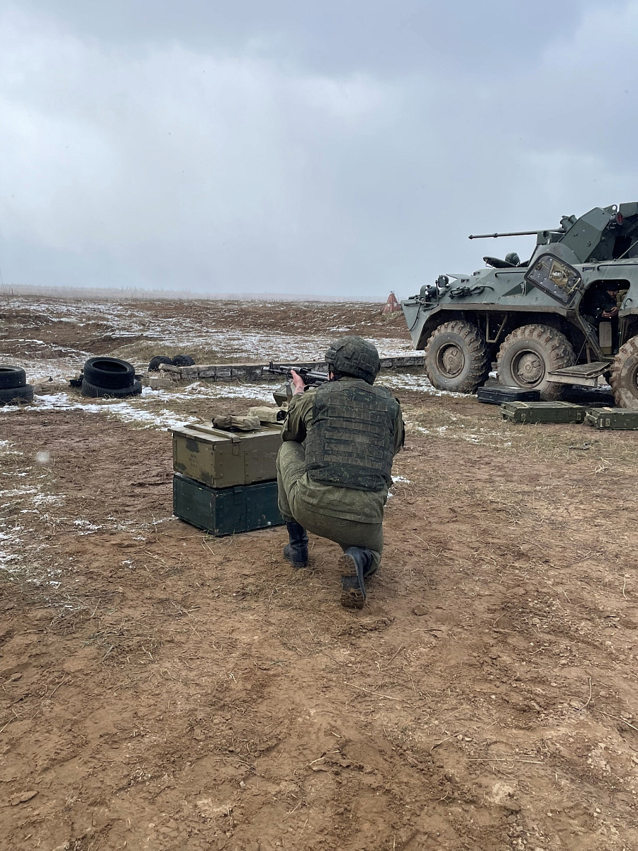 Военнослужащие 339-го отдельного гвардейского механизированного батальона 120-й отдельной гвардейской механизированной бригады выполняли упражнения стрельб из штатного оружия, отрабатывали вопросы эвакуации раненного из подбитого БТР. Наводчики БТР-82А выполняли упражнение контрольных стрельб из вооружения бронемашины. Водители отрабатывали навыки вождения в различных погодных условиях.
