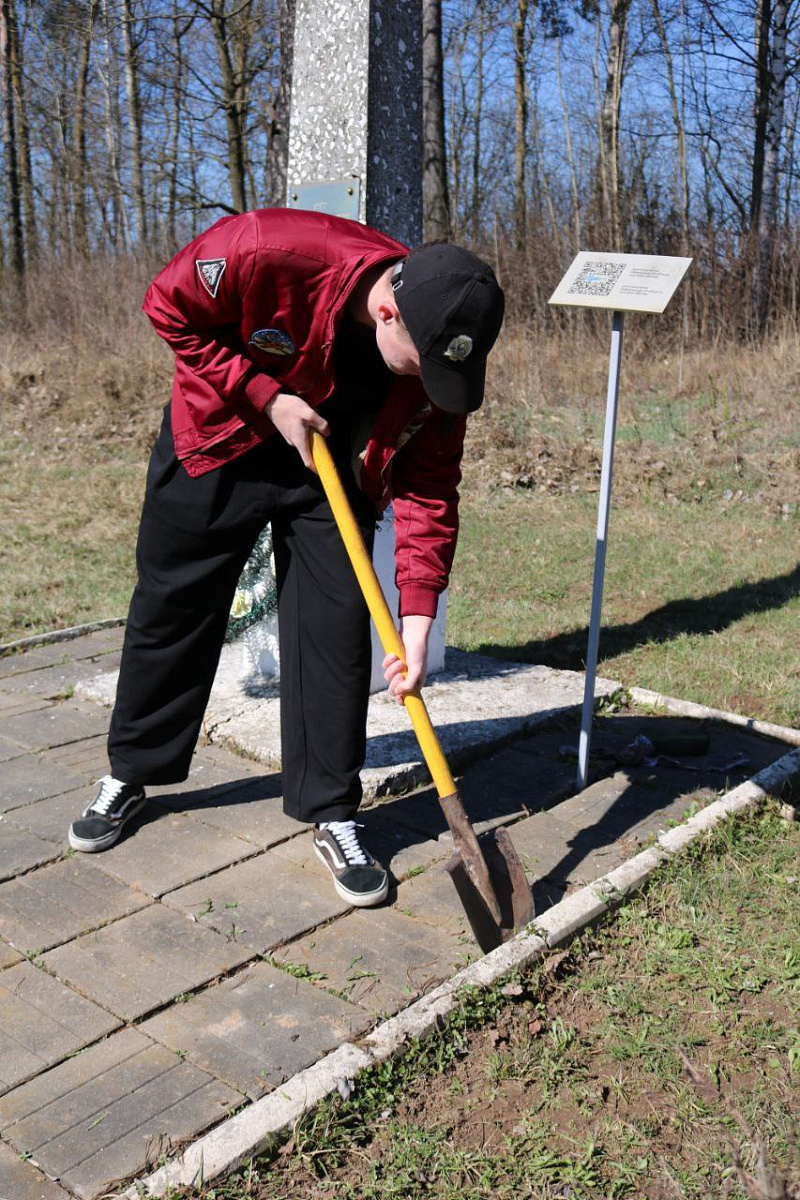 Совместно с военнослужащими 65-й автомобильной бригады они привели в порядок территорию у обелиска на могиле партизан, погибших при выполнении боевого задания в годы Великой Отечественной войны.