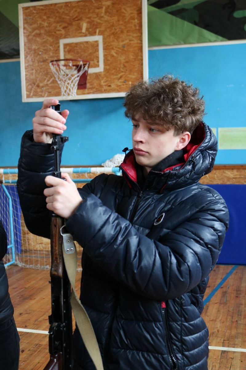 Школьники участвовали в сборке и разборке автомата, отработке практических элементов тактической медицины.